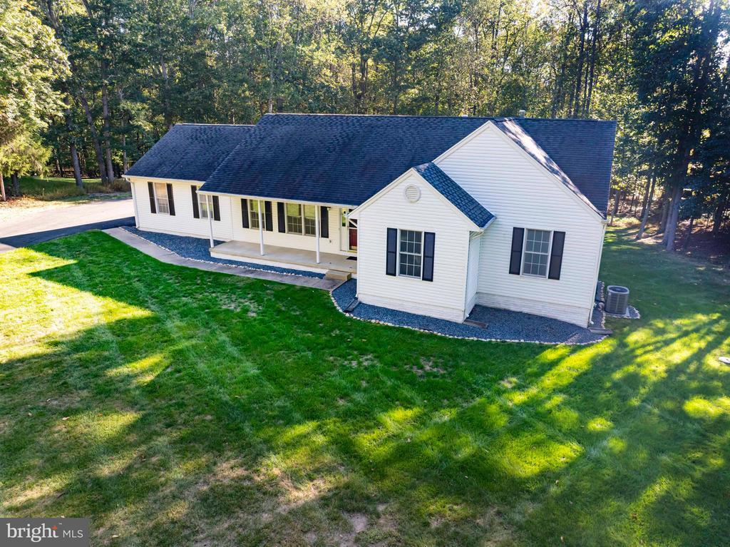 Welcome to this beautifully maintained 3-bedroom, 2-bath custom rambler located in a sought-after subdivision. This charming home offers one-level living with a spacious layout that includes a separate dining room and a bright living room featuring a cozy gas fireplace. The large center-island kitchen boasts upgraded white cabinets and provides plenty of space for cooking and entertaining. Master Suite includes full bath and walk in closest. Freshly painted throughout with new carpet and vinyl flooring, this home is move-in ready. The main-level laundry room adds convenience, while the full unfinished walkout basement, filled with natural light from the patio door, offers endless possibilities for future living space. Enjoy the outdoors from the inviting covered front porch or the expansive 21' x 14' rear deck overlooking the private, wooded backyard. Situated on over one acre with landscaping, this property also includes a detached 2-car garage, a paved driveway, and plenty of additional parking. Combining comfort, privacy, and curb appeal, this home is perfect for relaxing or entertaining in a peaceful setting. Covenants and restrictions apply