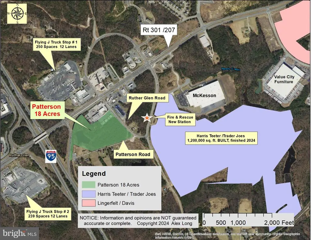 17.99 acres (rounded-off to 18 acres) at the Ramp from northbound I-95 to Routes 301 / 207 at Exit 104 Interchange. Subject fronts on the Ramp. About 350 feet of frontage on Ruther Glen Road and about 525 feet on Patterson Road. Trader Joe's distribution center of 1,200,000 is across Ruther Glen Road and the new Fire and Rescue Station is also nearby. Two truck stops with a combined 489 spaces and 24 lanes are nearby. LOVES Travel is a HUGE draw with lower fuel prices. McKesson Pharmaceuticals is 340,000 and Value City 360,000 sq. ft. nearby. Coastal produce has 125,000 sq. ft. and M.C. Dean has about 350,000 sq. ft. creating cyber security products. Kroger announced plans for 1.5m sq. ft. Subject is contiguous to LOVES Travel and 1.37 acres of this tract is under a ground lease to LOVES for parking. Details available upon request. A neighboring property might sell about 1.2 acres giving more frontage on I-95. Public Water and Sewer are generally available in the area and a map from Caroline County Utility Department is found in the Narrative. Please go to Documents for the Narrative which includes a number of maps and data. Owner might consider selling subject to zoning upon terms acceptable to Owner.