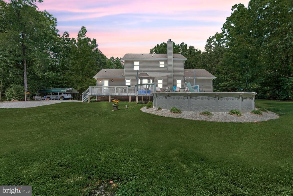 Price Reduced! Back on the market! while we were away the owner Installed a new roof on the garage, installed new heating and air system in the upstairs area Now is the time! Excited to share this wonderful listing. This absolutely beautiful home on 8.81 acres may be the ONE. 2,128 sq. ft Custom built home features 2 master bedrooms with bathrooms on the main level 1 is handicap accessible and plus a half bath, eat in country kitchen and a large family room. Upstairs has 2 bedrooms, and a home office plus a full bathroom. Back yard is setup for the whole family enjoyment, it has a large back deck that surrounds your above ground pool, playground area has its own swing set. For that person who love hobbies YES, a 32'-32' workshop-garage. For the car enthusiasts 2 metal carports one large enough to park your RV or boat. Additional sheds for storage. located 4 miles from Ladysmith, 6 miles from new water park. Easy commute to Fredericksburg and Ashland. Just bring the family and enjoy this wooded property.
