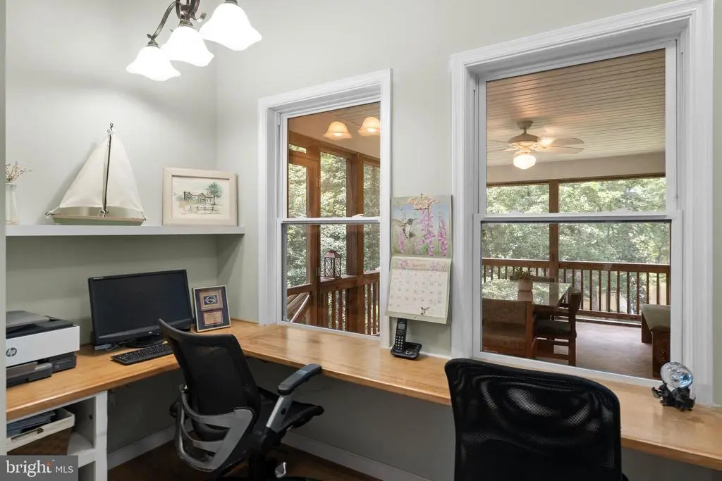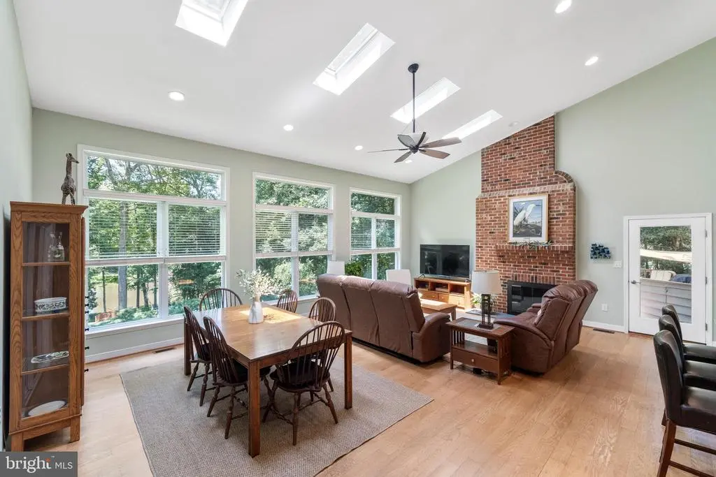 This stunning waterfront home in the gated community of Lake Caroline sits on 1.3 acres on a triple lot with 220 feet of shoreline and a boat dock. It features an open floor plan with vaulted ceilings and seven skylights throughout. You will love the abundance of natural light throughout! Custom kitchen includes granite countertops, stainless steel appliances, a double-door pantry, and a large island adjoining the great room with its four retractable skylights. From the great room step onto the screen porch or spacious deck which open to the luxuriously landscaped backyard. Easy-care perennial plantings throughout the property. The primary bedroom on main level includes full bath with custom shower and a walk-in closet. Second floor features a bedroom, full bath and a loft overlooking the great room. A major remodel in 2008 added a suite above the attached side-loaded two-car garage. The suite includes two bedrooms, a large sitting room, full bath, and is equipped with separate heating and AC. This serene home is a beautiful place to live, entertain and relax.