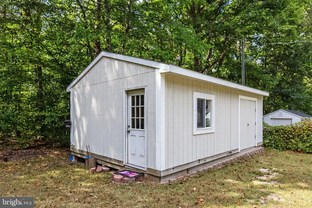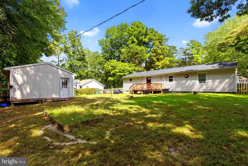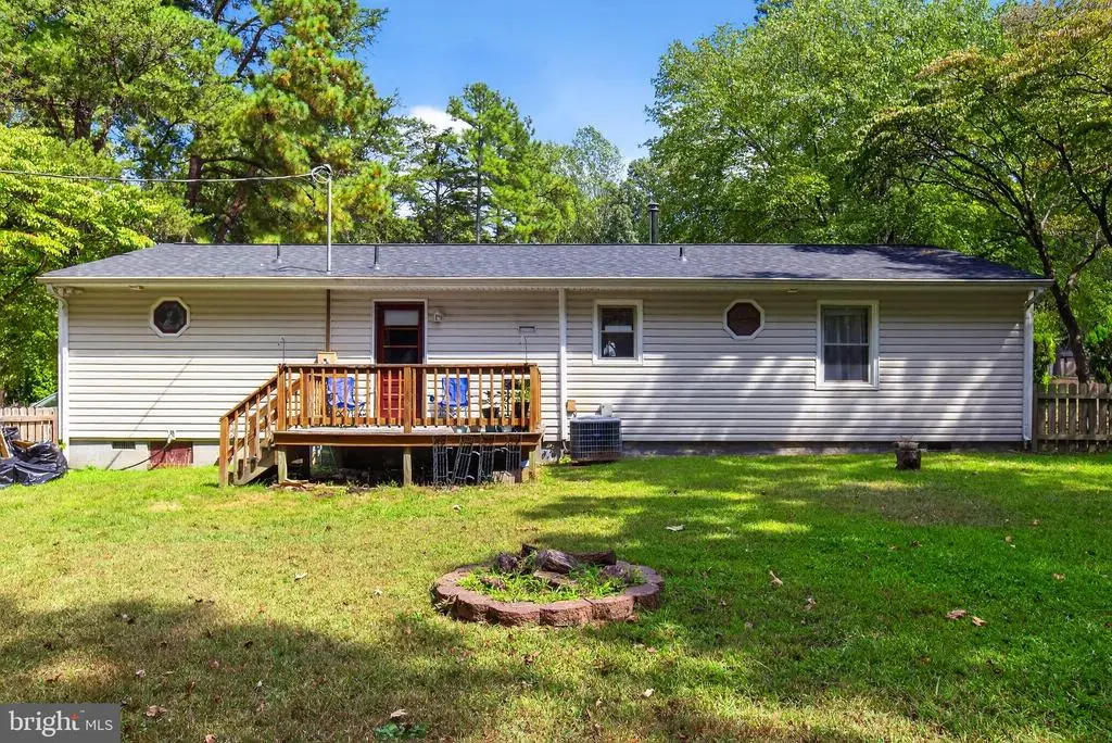 Only a few minutes to I-95 and "civilization", restaurants and shopping, this fantastic "cabinesque" property is in popular Caroline Pines... and checks off lots of boxes!! ONE LEVEL LIVING at it's finest-- 3 Bedrooms (all with brand new quality carpet) and 2 full updated bathrooms, open floor plan with dining area, comfy living room with woodburning stove, large kitchen with island and updated cabinetry, utility room with Laundry (washer and dryer)... and a terrific detached BONUS OUTBUILDING/SHED. This XXL "shed" is divided into half as storage/WORKSHOP with electric... and 1/2 as a modern finished STUDIO with mini-split HVAC system, recessed lights and very comfortable interior finishes with a window and a windowed entry door! Fully fenced and level backyard (even some grapevines!), rear deck. NEW ROOF IN 2024! The Caroline Pines subdivision is a "golf cart friendly" community with approximately 700 permanent wooded and open lots, 5 lakes for recreational use and, other amenities such as community pool, fitness center, and more!