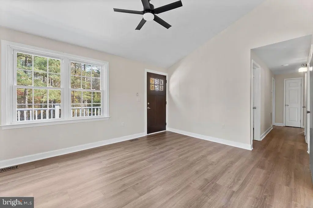 Experience one-level living at its finest in Lake Caroline! This unique home, perched on a hill on a spacious double lot, offers incredible privacy and undeniable curb appeal. The thoughtfully designed layout provides a warm and inviting atmosphere with plenty of natural light filling every room. The kitchen is equipped with stainless steel appliances and a brand-new oven, while the nearby laundry closet includes washer and dryer hookups for added convenience. The primary suite features vaulted ceilings, a luxurious bathroom with dual shower heads, a separate soaking tub, and a roomy walk-in closet for ample storage. Step outside and enjoy the fenced backyard, playground, wraparound deck, and cozy firepit — perfect for hosting gatherings or unwinding under the stars. Plus, take advantage of all the amazing amenities Lake Caroline has to offer. This home is truly a gem!