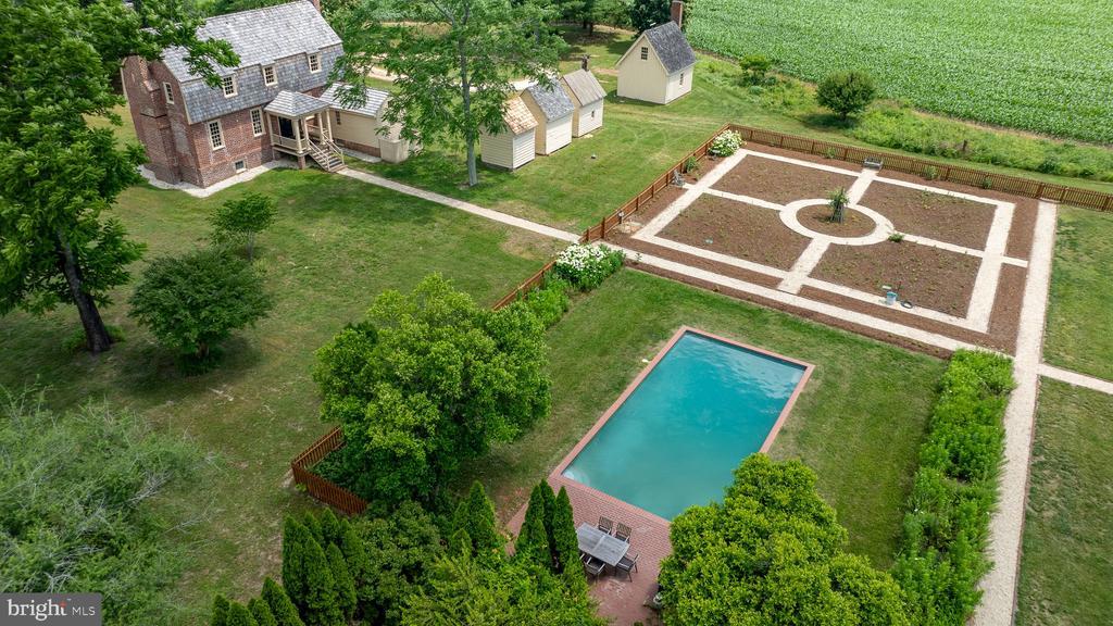 Cherry Walk circa 1781, located in the Millers Tavern Rural Historic District, was built for Carter Croxton a Revolutionary War figure from Essex County. The main house features handsome flemish bond brickwork, a wood shake gambrel roof, and two elegant chimneys that flank both sides of this late 18th century Tidewater Cape. Original brickwork on the exterior, original doors, floors, hardware, windows, mantels and moldings have remained through the ages. In recent years, the current owners have embarked upon a sensitive and monumental restoration of the main house, fencing and gardens. Water features found on the property include natural streams which meander through part of the woodland with wood duck habitats and a lovely farm pond teaming with aquatic flora and fauna. An in-ground salt pool with new salt system provides a wonderful focal point in the garden and a relaxing respite on hot summer days. A rare and remarkable assemblage of historic dependencies original to the property, offers a rare glimpse into farm life in the late 18th century. The offering of this very handsome home presents a unique buying opportunity to those seeking a renovated and restored turn-key oasis. 95+ acres of pristine farmland, includes mature hardwoods and pine forest, which provide abundant habitats for all types of waterfowl, upland birds, wild turkey and wildlife. Minutes to Wineries, Medical Facilities, Antique Shops, Boutiques, Fine Dining, Historic Sites, Museums, Marinas and so much more. An easy drive to Richmond, Williamsburg, the Northern Neck and Fredericksburg. Convenient to Washington, D.C.