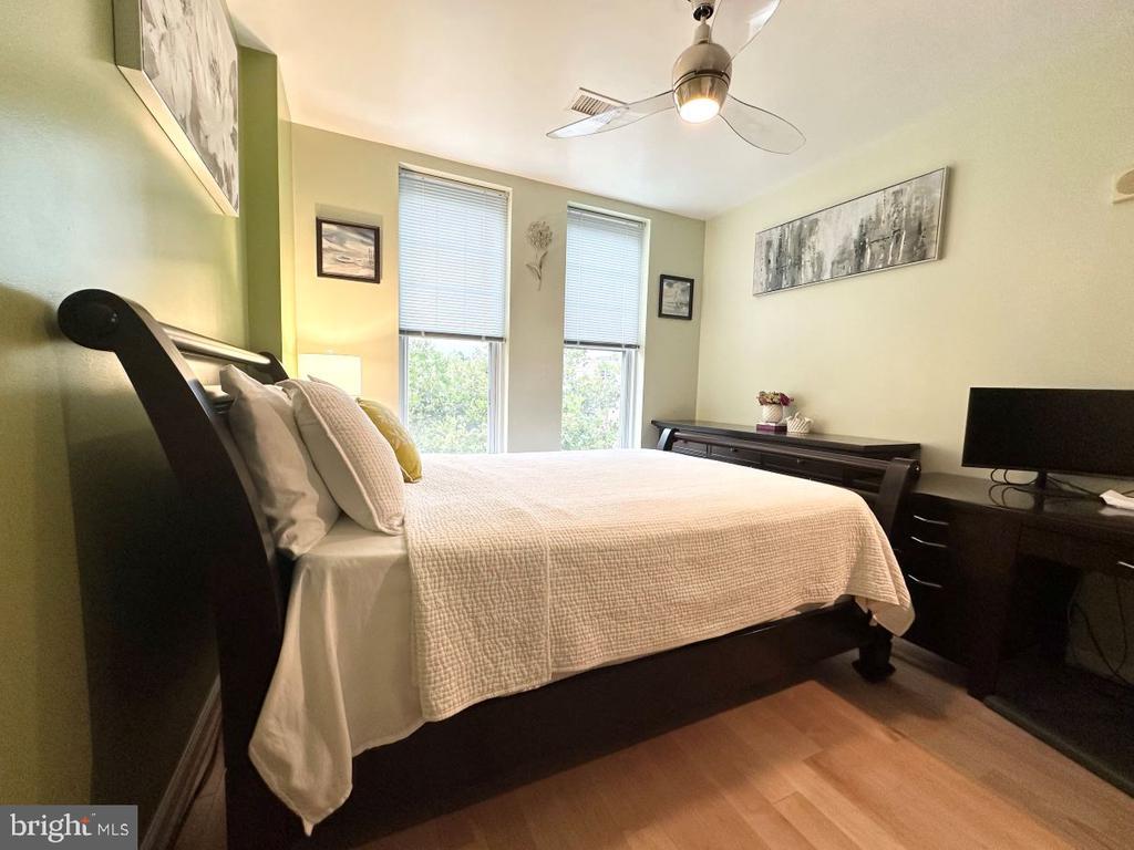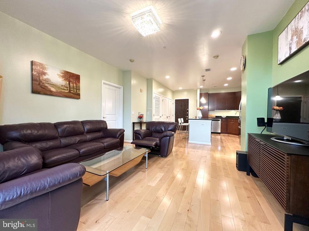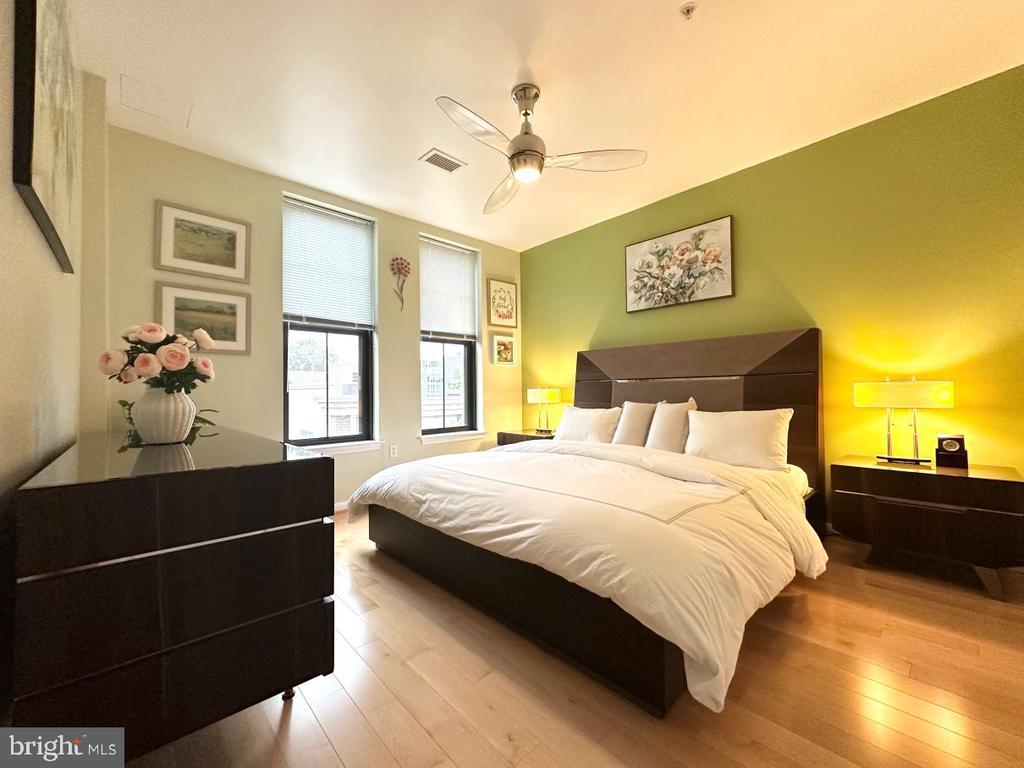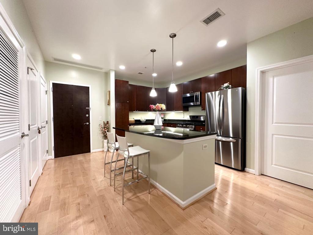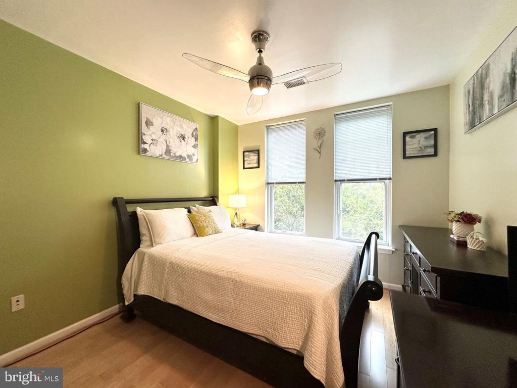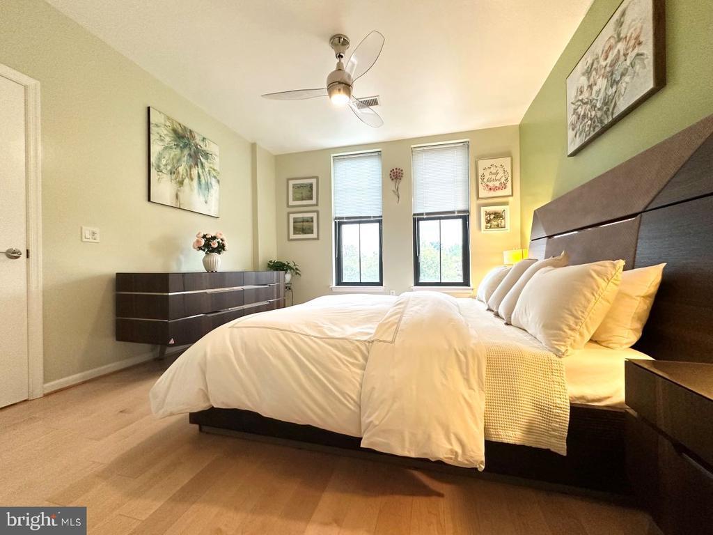 Don’t miss this incredible opportunity to own a beautifully upgraded home in desirable Falls Church City! This unit boasts stunning luxury hardwood floors throughout, installed in 2018, and ceiling fans in the spacious bedrooms, bringing warmth and elegance to every room. The kitchen is a chef’s dream, featuring sleek stainless steel appliances and a brand-new LG refrigerator installed in 2024. This home offers both convenience and style—perfect for buyers seeking comfort and quality. Relax on your private balcony overlooking the landscaped courtyard. Enjoy access to top-tier amenities, including a fully equipped fitness center, stylish community room, pool table, lounge, private movie screening room, and a stunning rooftop terrace—perfect for relaxing or entertaining with panoramic views. This one truly checks all the boxes and shows pride of ownership throughout-meticulously maintained and shows like a model home!