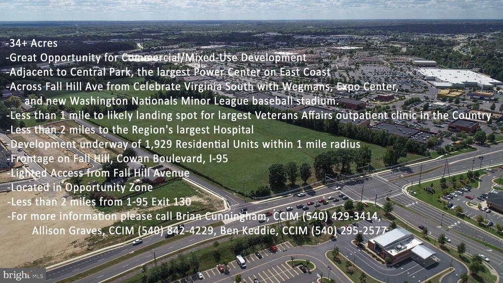 Ulmanor features 34.2 Acres, representing one of the largest undeveloped parcels in the City of Fredericksburg. Currently zoned R2 and in land use, up-zoning potential for the property would allow multi-family and many other commercial possibilities by way of a mixed use concept.The property is immediately adjacent to Central Park, one of the largest Power Centers on the East Coast. Further, it is across Fall Hill Avenue from Celebrate Virginia which features the new Washington National's minor league baseball stadium, the Expo Center, and Wegman's. However, Property is not encumbered by restrictions found in Central Park and Celebrate Virginia. The Region's largest Hospital is located within 2 miles of the Property.Once developed, the Property will feature excellent visibility and access to two major roadways: Cowan Blvd and Fall Hill Avenue. Property also has frontage on I-95.