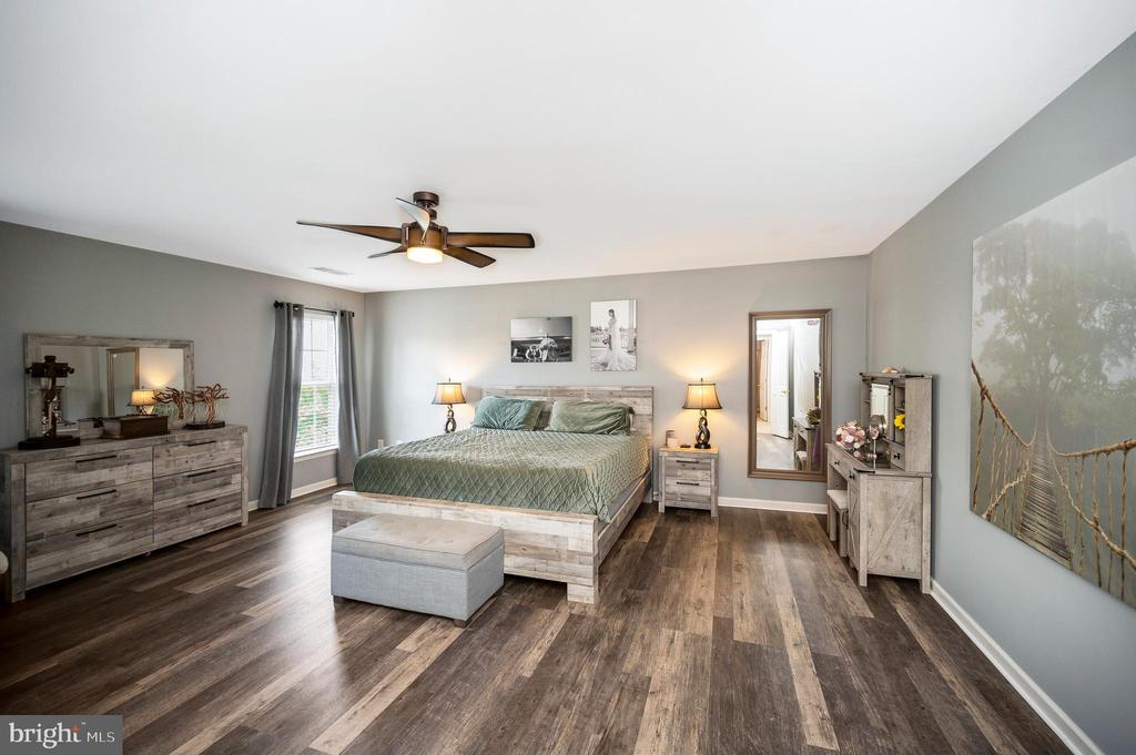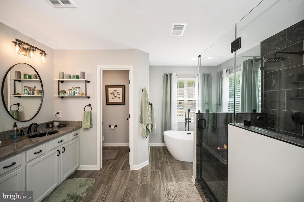 Welcome to this beautifully maintained brick-front home situated on a desirable corner lot with a two-car attached garage. Step inside to a grand two-story foyer with elegant tile and luxury vinyl plank (LVP) flooring throughout the main level. The layout offers both function and comfort, perfect for everyday living and entertaining. Upstairs, you’ll find four generously sized bedrooms, each with large closets to accommodate your storage needs. The spacious primary suite features LVP flooring and a fully renovated en-suite bath, designed with spa-like finishes for a relaxing retreat. Enjoy outdoor living in the fully fenced backyard, complete with a low-maintenance Trex deck and a separate patio—ideal for gatherings or quiet evenings. The rear yard is lined with mature trees, offering a peaceful setting and added privacy.