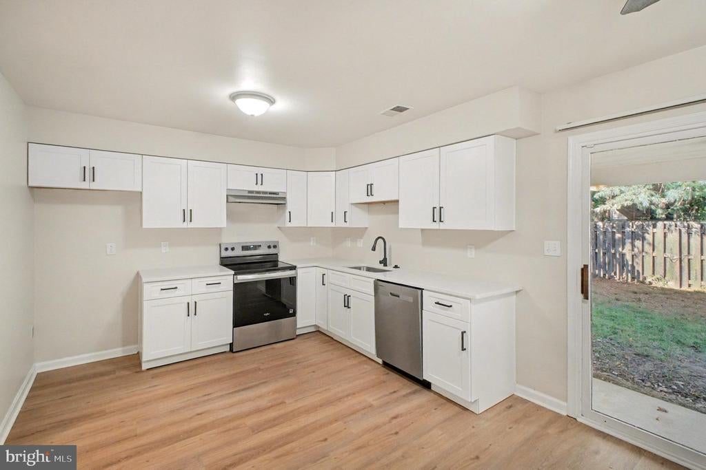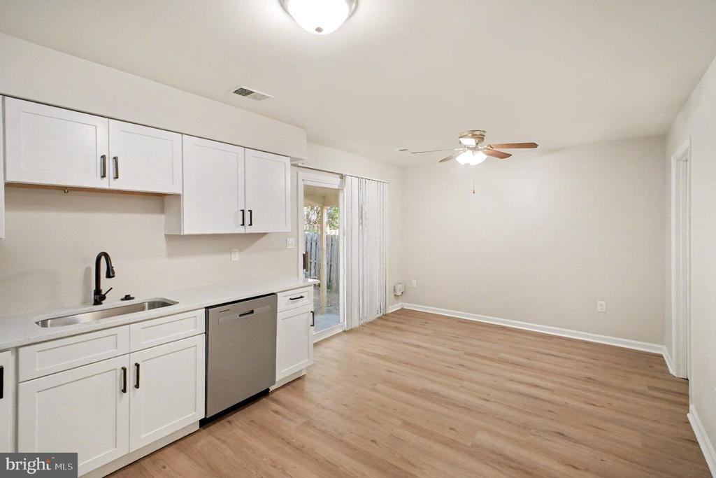 Updated end-unit townhome tucked inside Fredericksburg’s Olde Greenwich community. This home has been completely refreshed with thoughtful updates designed for everyday comfort and low-maintenance living. Inside, you’ll find fresh paint throughout, new luxury vinyl plank flooring in the main living areas, and new carpet upstairs. The kitchen has been fully renovated with new cabinets, quartz countertops, stainless steel appliances, and a modern single-basin sink. Both full bathrooms feature new vanities, tile tub surrounds, and updated fixtures, while the half bath on the main level adds everyday convenience. This move-in-ready property is minutes from downtown Fredericksburg, Central Park shopping, and commuter routes. It’s an ideal fit for a first-time buyer, investor, or anyone looking for an easy-to-maintain home close to everything.