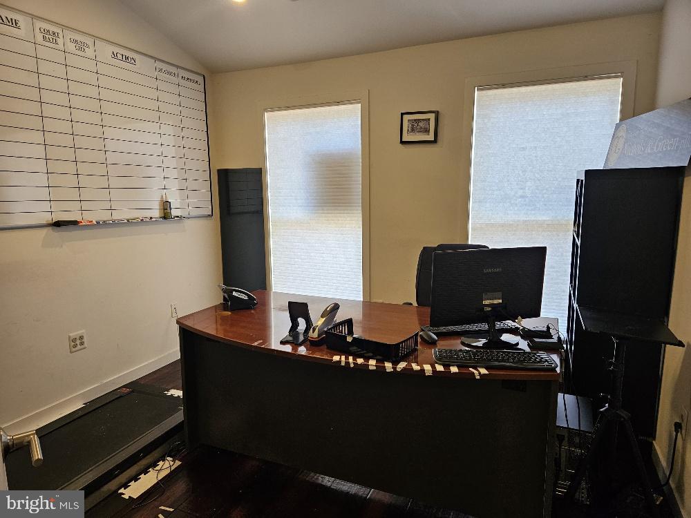 GREAT LOCATION & LOVELY OFFICE in Judicial Court Office Condominium! Across the street from FFX Courthouse is this lovely upper level unit overlooking Judicial Drive w/great windowline & high ceilings for lots of natural light. Efficient layout with: reception/admin area, 3 private offices, kitchenette, BA, large storage closets. Perfect for law office, title co, CPA, therapist, and most professional office uses. Unit has been renovated with new LVP 'wood' plank flooring, updated restroom & kitchenette, high ceilings with ceiling fans add to the spacious and bright interior. Plenty fcfs parking & uniform exterior signage allowed. Owner currently occupies the unit and will vacate prior to settlement. Sentrilock lockbox on outside railing as you enter the building.