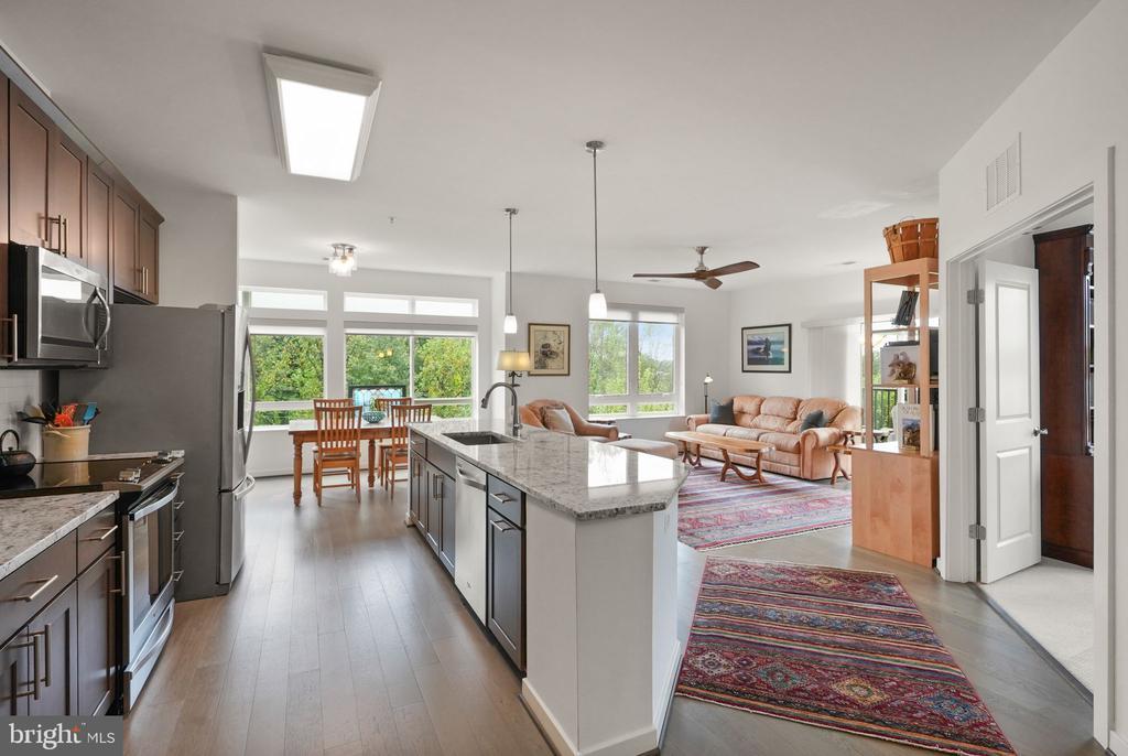 Welcome to a luxurious lifestyle at 9450 Silver King Court, Unit 203, in the heart of Fairfax, VA! This modern 2-bedroom, 2-bathroom condo offers a generous 1,472 square feet of living space, complete with a third room perfect for an office or den. Did you know that it also has a VA assumable loan at a 2.625% interest rate? Fun fact: You DO NOT have to be a veteran to assume it!! You can step inside this beautiful corner unit and be greeted by an open floor plan that seamlessly blends living and dining areas, creating an ideal space for entertaining. The kitchen is a chef's dream, featuring granite countertops and sleek stainless steel appliances. Enjoy cozy evenings or morning coffee on your private balcony. Retreat to the primary suite, which boasts a double sink, separate soaking tub, and shower, your personal spa experience. Vinyl floors run throughout, adding to the modern vibe of the space. Convenience is key with in-unit washer and dryer, assigned parking, making it a breeze ensuring you never have to worry about where to leave your car. This secure building offers fantastic amenities including a gym, common storage, and a barbecue area. Ideally located just minutes from major highways and only 1.7 miles from the Vienna/Fairfax-GMU Metro Station, this condo offers the perfect blend of style and convenience. Whether you're commuting or exploring, you'll enjoy easy access to everything the area has to offer. Step outside to find scenic biking and walking trails along Accotink Creek, or head across the street to the Army Navy Country Club. You're also just moments from a wide variety of shopping and dining options, including Trader Joe's, Fair City Mall (featuring Safeway, Burlington, and HomeGoods), and Fairfax Circle Shopping Center. Missing low interest rates? Call for more details and make this place home! Open House - Saturday - November 1st - 2 pm to 4 pm