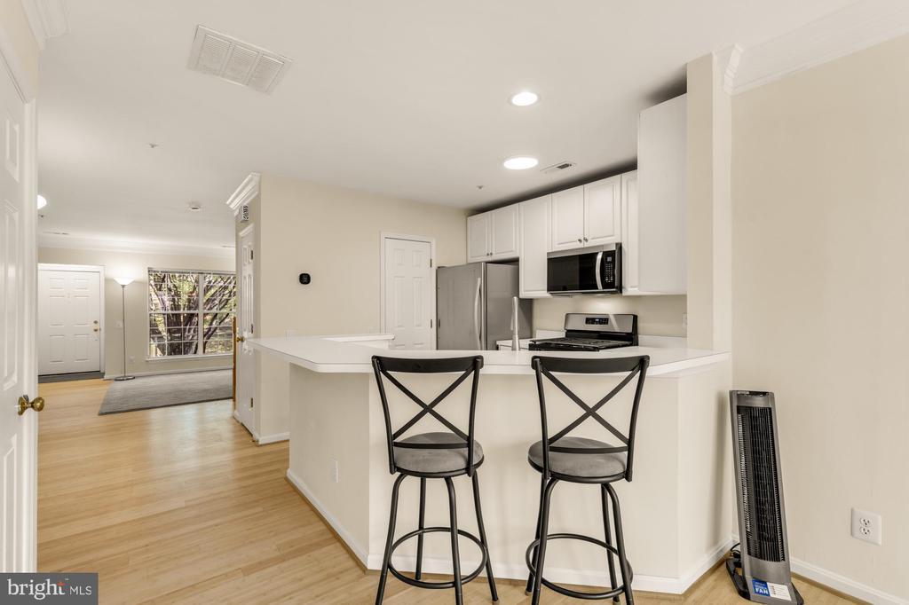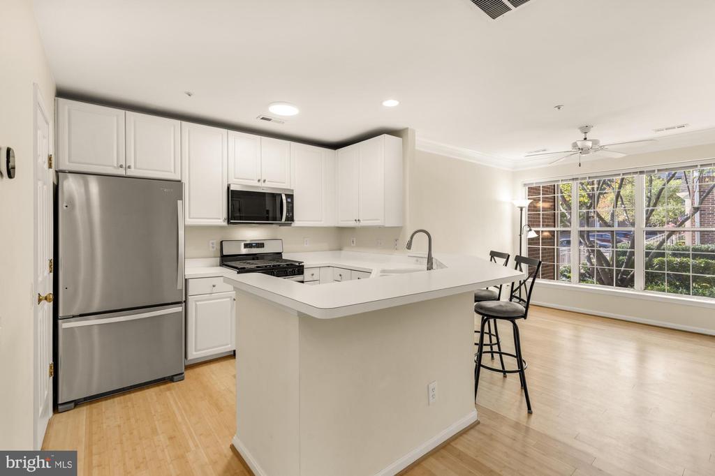 Discover this spacious two-level condo in a prime Fairfax City location. This first-level unit offers an open and functional layout, with the main floor featuring a bright, open kitchen with brand new stainless steel appliances and an adjoining dining and living area. A classic gas fireplace provides a cozy focal point, perfect for relaxing or entertaining. A convenient powder room is also located on this level for guests. Bamboo flooring throughout the condo gives it an open, elevated feel. The outdoor patio outside of the living space is a lovely place to enjoy your morning coffee! Upstairs, you'll find two generous bedrooms, each with its own en suite full bathroom, providing privacy and comfort. The upper level also includes a laundry area for added convenience. The condo fee covers a wide range of services, including water/sewer, trash and snow removal, exterior maintenance, and landscaping, making for a low-maintenance lifestyle. Enjoy the best of Historic Old Town Fairfax City living. This home is just one block from a variety of restaurants, shopping, grocery stores, and two large city parks. Fairfax City Hall, Fairfax County Government Center, Fairfax County Courthouse and other various government buildings are all in close proximity. Commuting is a breeze with excellent access to major routes and public transportation, including Routes 66, 50, and 29, as well as George Mason University.