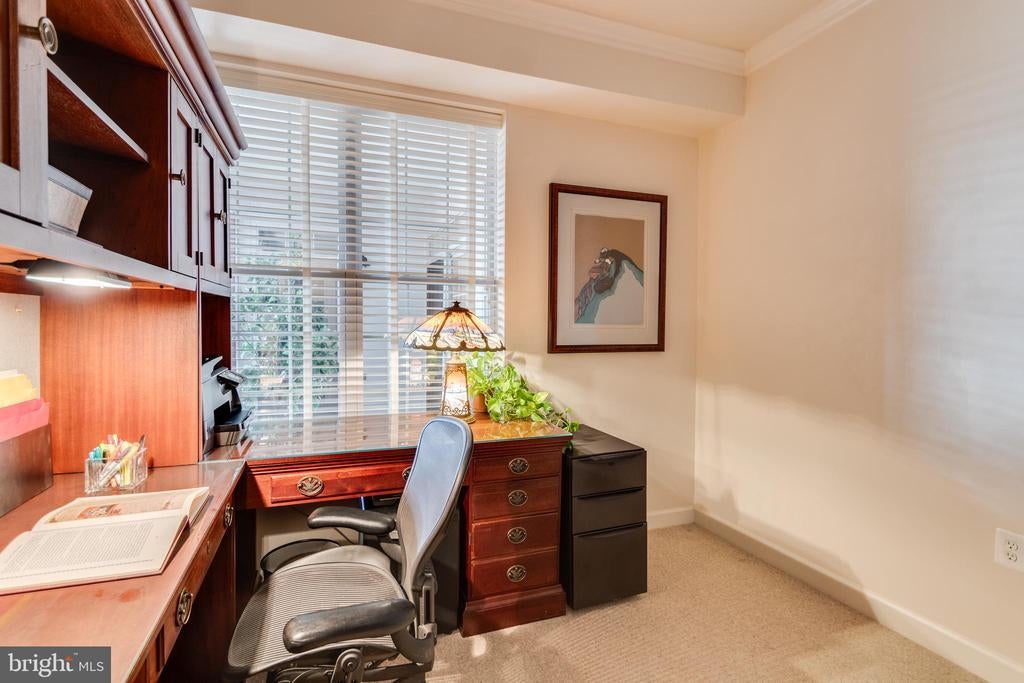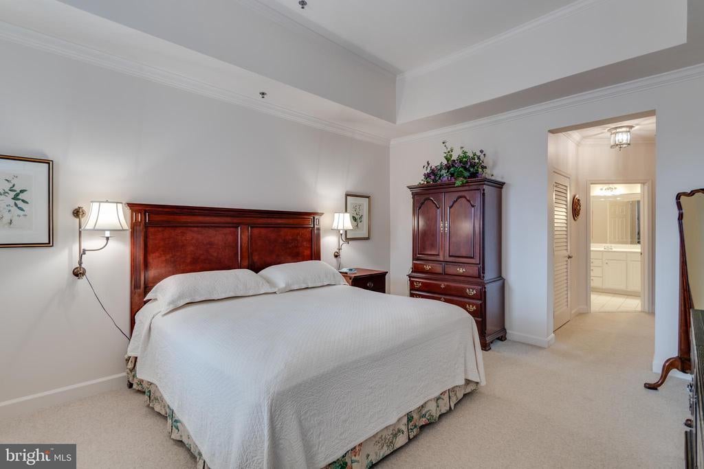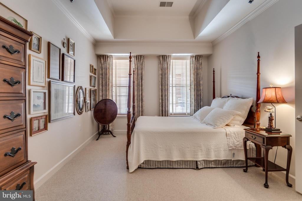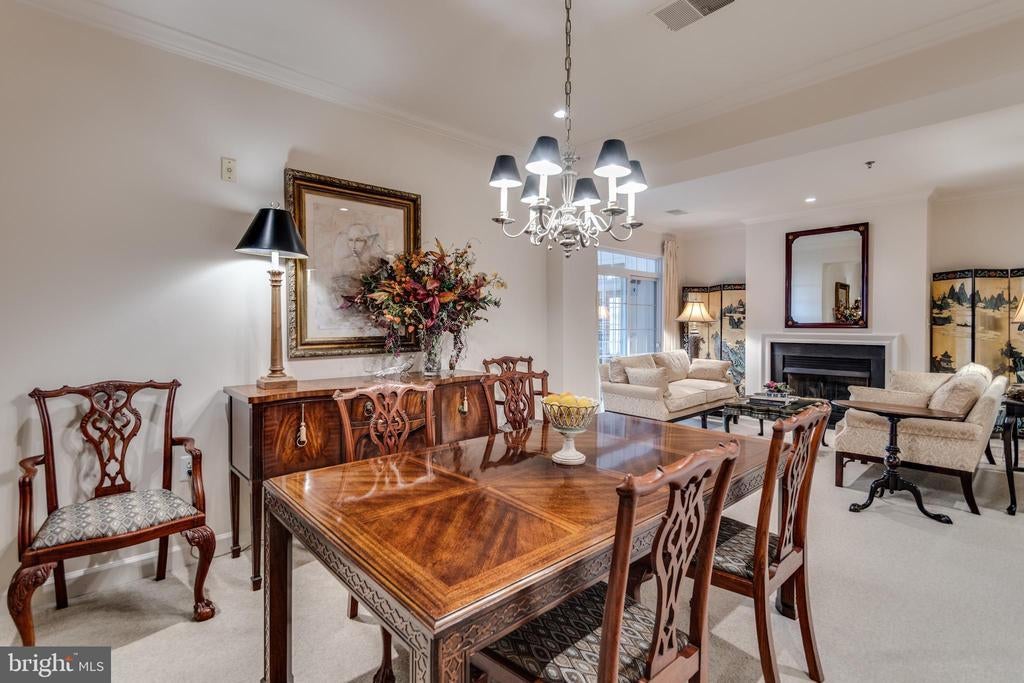 Best offers will be presented Monday, October 13 at 5pm. Rarely available top floor 3 Bedroom 2.5 Bath with Library located in the heart of Old Town Fairfax. Features 2,026 square feet of pristine, move-in ready living space, 9' ceilings, tray ceilings, inviting entry foyer, open living/dining room with gas fireplace and crown moldings, recessed lighting, gorgeous eat-in kitchen with gas cooking, stainless steel appliances, granite counters and pantry. Library has beautiful built-in cabinetry and millwork added. Private primary bedroom suite with dual vanity, separate shower and soaking tub, walk-in closets with custom shelving and private terrace access. On the opposite side of the unit find the 2nd primary bedroom suite with tray ceiling, walk-in closet and full bath with dual vanities and combo tub/shower and 3rd bedroom and half bath (easily converted to full bath). Includes 2 upper garage parking spaces & an enclosed storage space. Pet friendly building, fitness rooms, inviting lobby & meeting room and several sitting areas throughout the building. Ideal location, walk to historic city of Fairfax shops and restaurants. Recent Upgrades include: Painted walls and ceilings (2018), Masland wool carpet (2018), HVAC (2016), HVAC Coil Replaced (2025), Water Heater (2015), GE Profile French door Refrigerator (2019), Jenn-Air Dishwasher (2022), Whirlpool Duet Washer/Dryer (2010), crown moldings (2004), Louvered Doors (3) + Double French Doors (2) (2009), Library Cabinetry & Millwork (2010), Ironing Center (2014)
