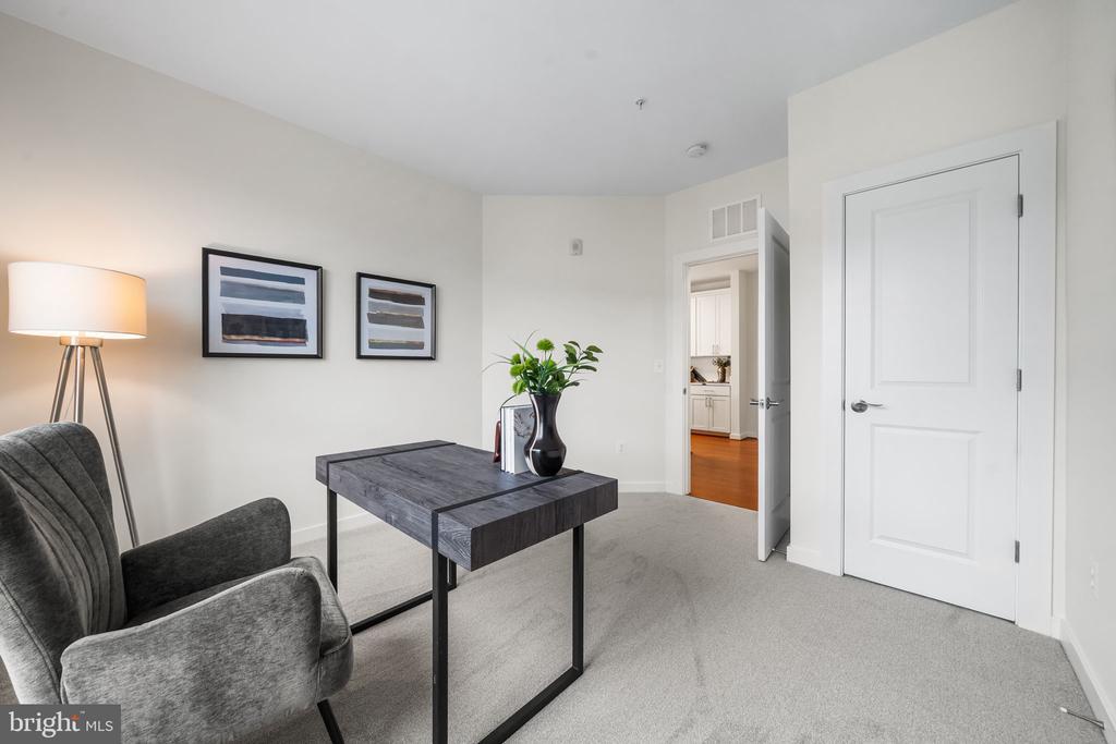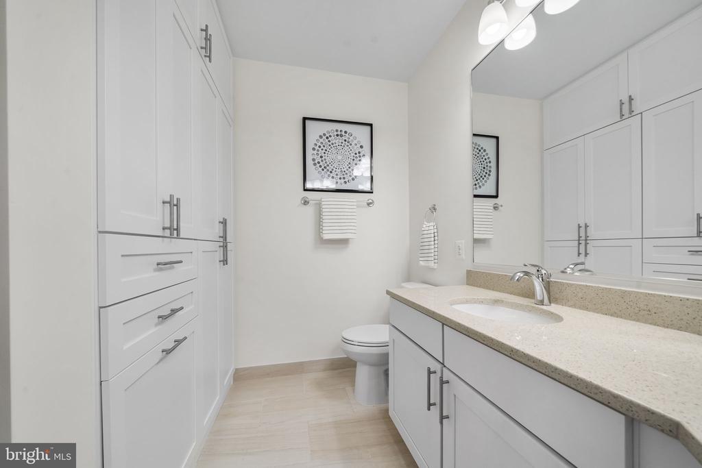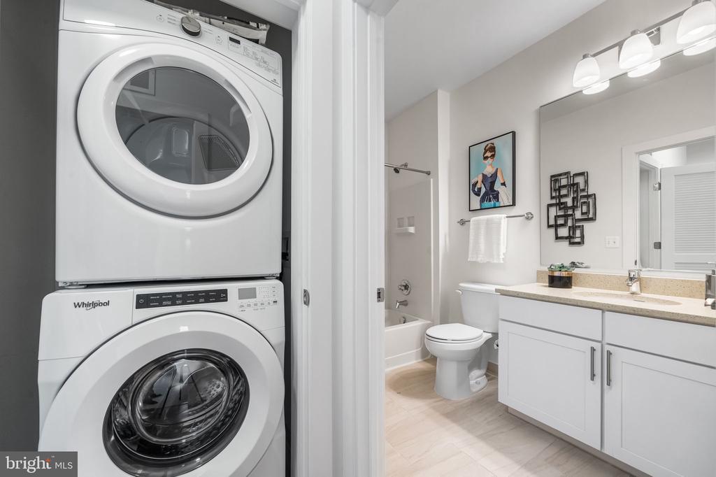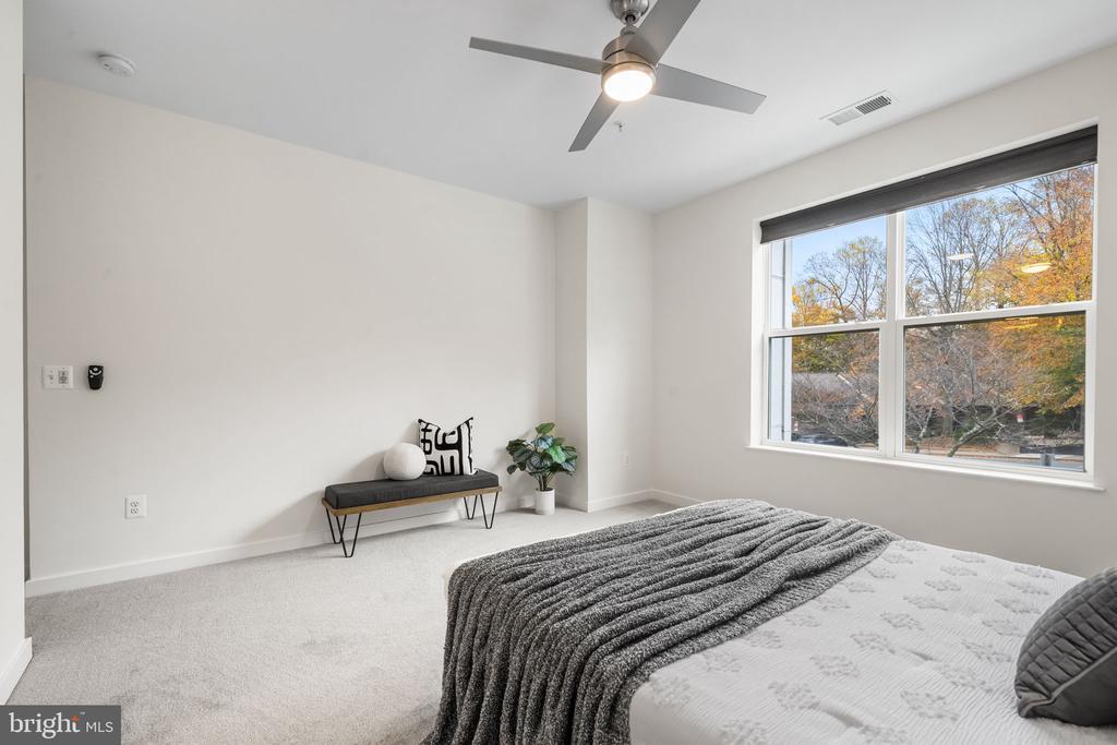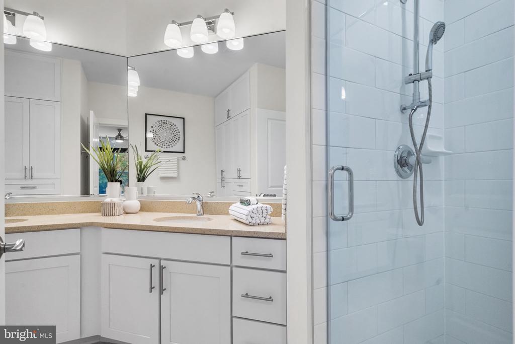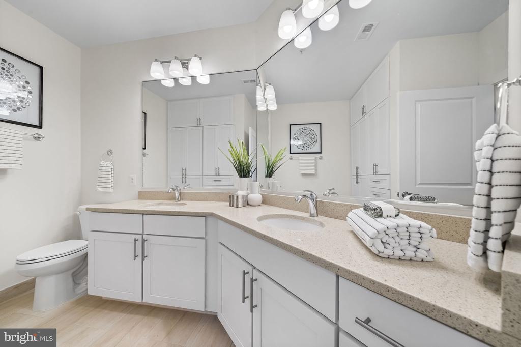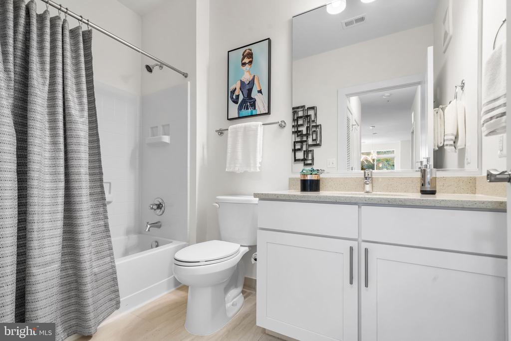 Welcome home to 9450 SILVER KING COURT, #202--contemporary luxury living in the heart of Fairfax City! This stunning 3-bedroom, 2-bath corner unit condo is a hidden sanctuary offering a perfect blend of modern elegance and everyday convenience. The open floor plan is filled with natural light and finished with sleek hardwood floors throughout the main living spaces. The gourmet kitchen impresses with refined quartz countertops, large island with seating, 42-inch upgraded white shaker cabinets, and stainless steel appliances—ideal for both cooking and entertaining. The spacious living and dining area features large windows overlooking peaceful greenery, creating a private and tranquil retreat. Enjoy outdoor views as you relax on your spacious balcony. The primary suite boasts an expansive walk-in closet plus two additional closets for ample storage. Its spa-inspired en-suite bath features a dual-sink vanity, walk-in shower, and custom built-ins for a truly relaxing experience. Two additional bedrooms feature brand-new carpet and share a beautifully finished full bath. The home also includes a full-size washer and dryer for added convenience. Additional highlights include a private locked storage unit directly across from the condo, an assigned parking space in the secure underground garage, and a dedicated bike storage area. THE ENCLAVE community residents enjoy access to premium amenities, including a tastefully designed lobby, a fully equipped fitness center, and a beautifully appointed club room with a gourmet kitchen—perfect for hosting larger gatherings. All this in an unbeatable location—steps from Fairfax City grocery stores, shops, gyms, and restaurants, with easy access to Routes 50, 66, 29, and I-495, minutes from the Vienna Metro plus George Mason University and City parks. Experience the best of modern living and urban convenience at 9450 Silver King Ct #202—a truly exceptional place to call HOME!