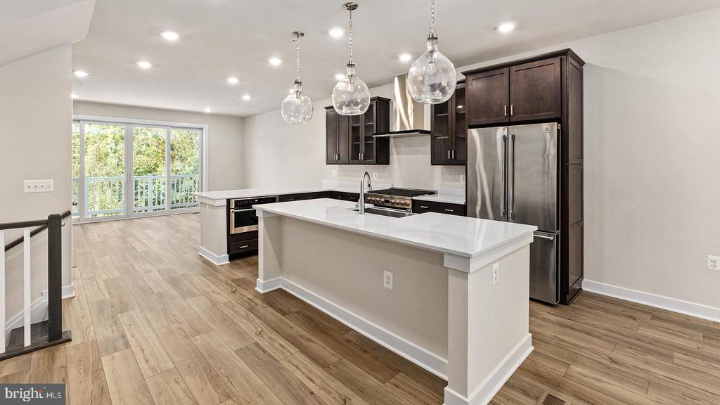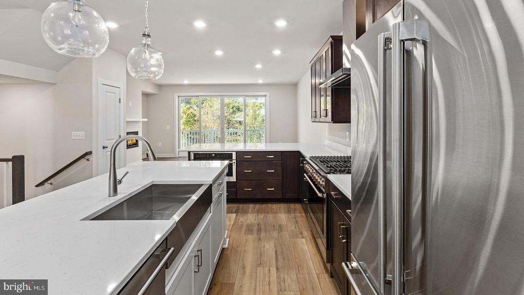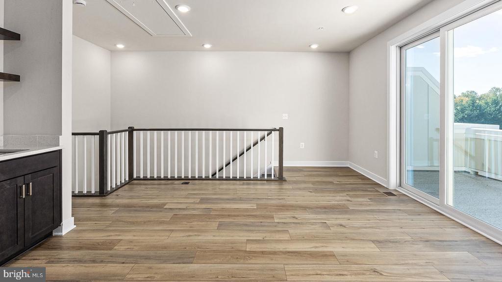 Beautiful 4-level townhome in the City of Fairfax, offering over 2,600 square feet of thoughtfully designed living space, a private rooftop terrace, and a 2-car garage. This home features green views, east-west exposure, and incredible natural light throughout. Whether you're enjoying your morning coffee on the deck or watching the sunset from the rooftop terrace, you'll love the peaceful, tree-lined setting—just minutes from shopping, dining, and commuter routes. The entry level features a welcoming foyer, flexible space ideal for a home office or gym, extra storage, and a 2-car rear-load garage. The open-concept main level offers a modern kitchen with a large island, ample cabinetry, stainless steel appliances, and flows into a spacious dining area and great room. A gas fireplace and a 12-foot sliding glass door open to a private deck for effortless indoor-outdoor living. Upstairs, the primary suite includes a walk-in closet and spa-like bath with dual vanities and a walk-in shower. Two additional bedrooms, a full bath, and laundry complete this level. The top floor offers a loft with a wet bar, fourth bedroom, full bath, and access to a private rooftop terrace. Located in the desirable Northfax West community, this home provides easy access to Old Town Fairfax, the Mosaic District, Vienna/Fairfax-GMU Metro (7 minutes), I-66, I-495, Route 50, Tysons, Fair Oaks Mall, and more. Modern design, a smart layout, and a quiet setting—right where you want to be.