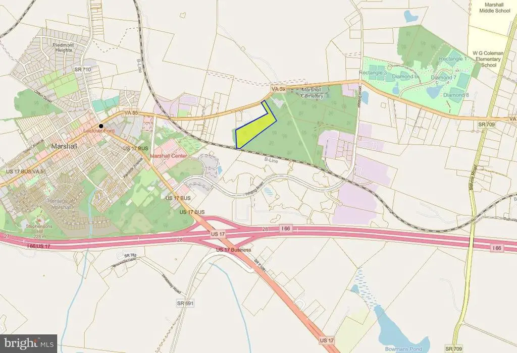 This 12.5-acre industrial property in Marshall, VA offers a prime development opportunity with minimal wetlands and 170 feet of rail frontage. Located less than half a mile from I-66, it provides easy access to Northern Virginia and the D.C. metro area. The site has access to public water, sewer, and electricity. Additionally, a 100 foot easement will be conveyed for access to E Main St., enhancing accessibility. With ample expansion potential, it’s ideal for warehousing, distribution, light manufacturing, or other industrial uses in a key Fauquier County industrial corridor.