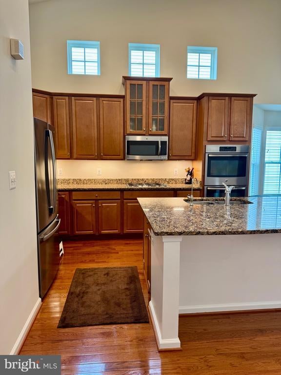 Rambler with Bonus 4th Bedroom on the second level. Hard to find Main level living. Spacious open floor plan with soaring ceilings and lots of windows with custom blinds and shutters. Home features a gourmet kitchen with 42 inch cabinets, double ovens, BI microwave, gas cooktop, island sink, refrigerator and granite counter tops. Off the family room is a screened porch, deck and stamped concrete patio, all backing to wooded open space. The main level owner's suite has a sitting room with access to the deck and screened porch. The upper level Bonus room features a large bedroom with it's full bath. The lower level is finished with a large recreation room and full bath. All located in the Brookside Community with many amenities.