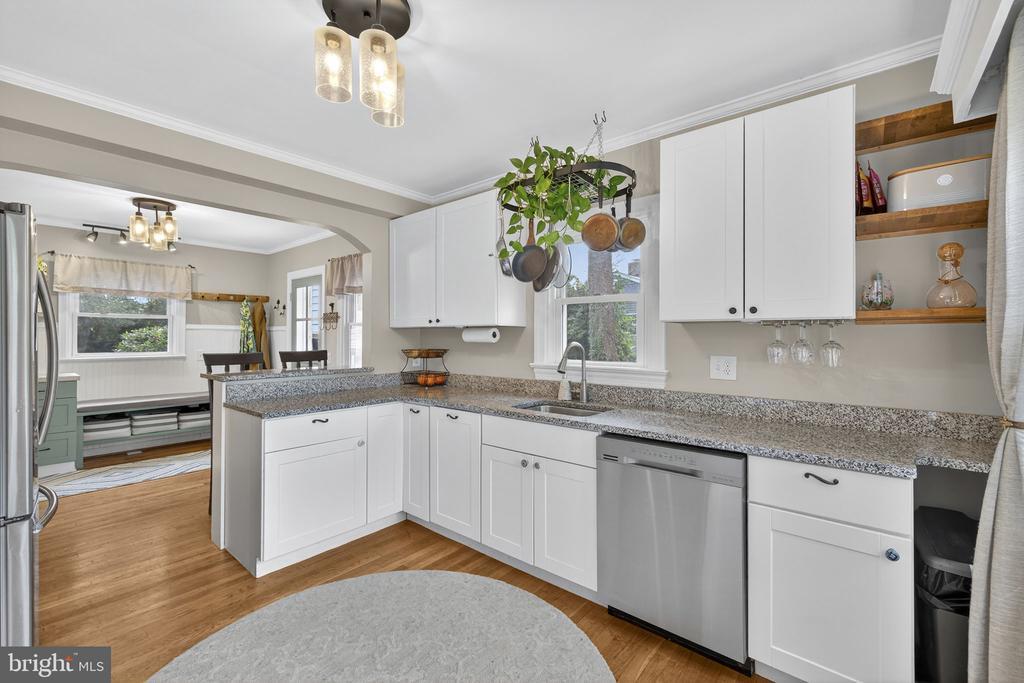 If you missed it before, here is your chance! Back on the market, even better than before with a Brand NEW Roof and gutters! Lovingly maintained and updated stone cape cod on a spacious lot with mature trees and landscaping right in Town! An easy walk to the WARF, FQ High School and Rady Park. The exterior features a two-car detached garage with storage, a new shed, fenced rear yard, deck, concrete patio/sport court and screened porch perfect for relaxing evenings. Numerous improvements over the past five years to include the kitchen with white cabinetry and stainless appliances, renovated bathrooms, new heat pump, some roofing, windows, flooring and more. Wood floors throughout, main level primary suite, sunroom, main level laundry, secondary laundry hookup in basement as well as efficiency apartment with private entrance and a month-to-month tenant. Hurry, this one won't last long!