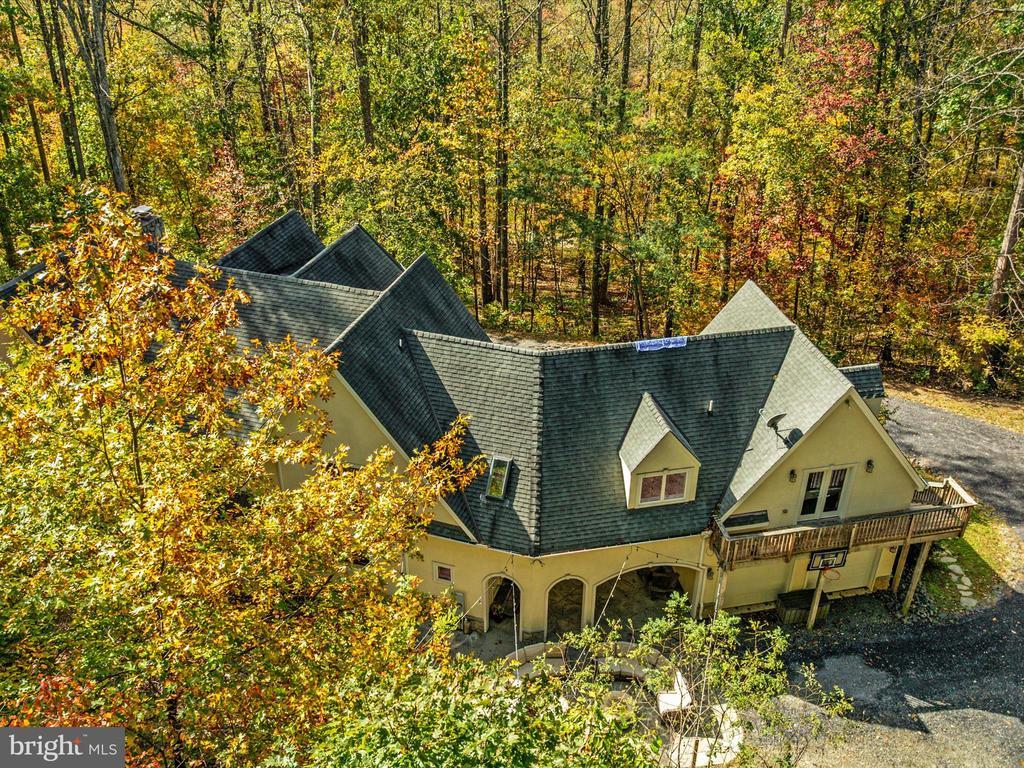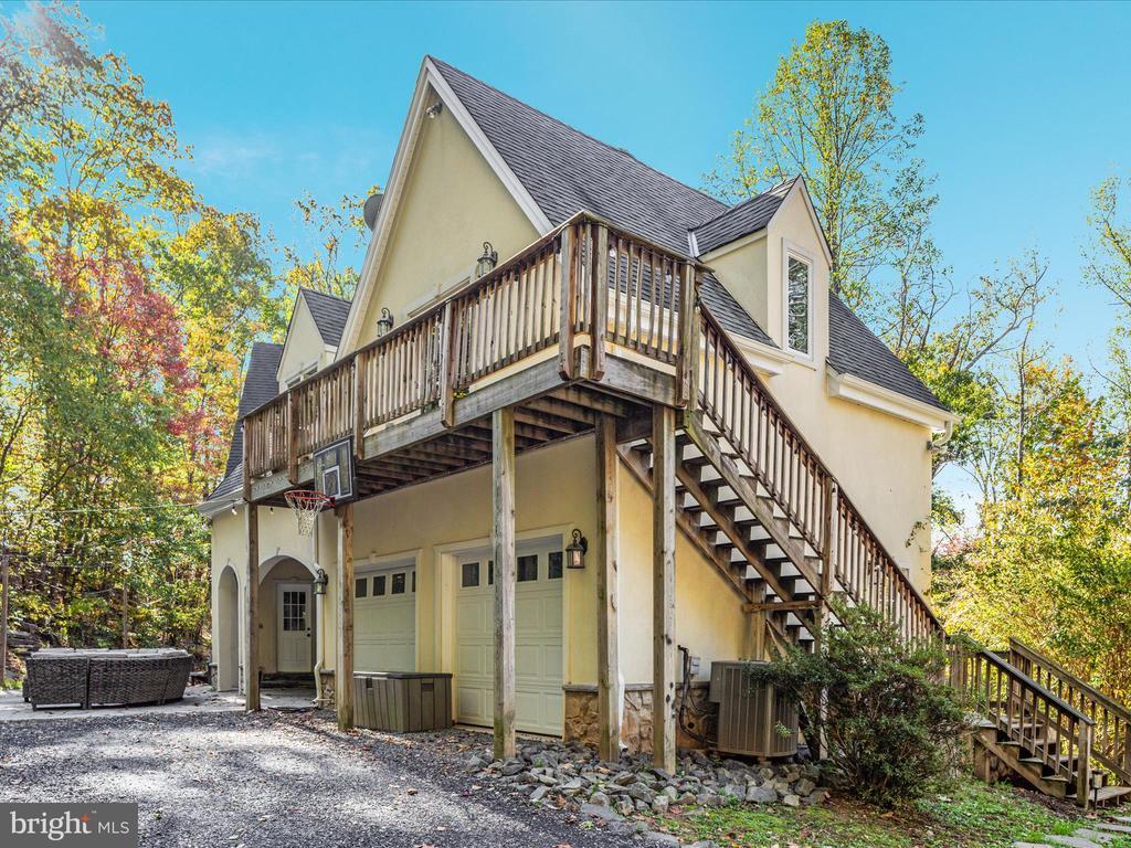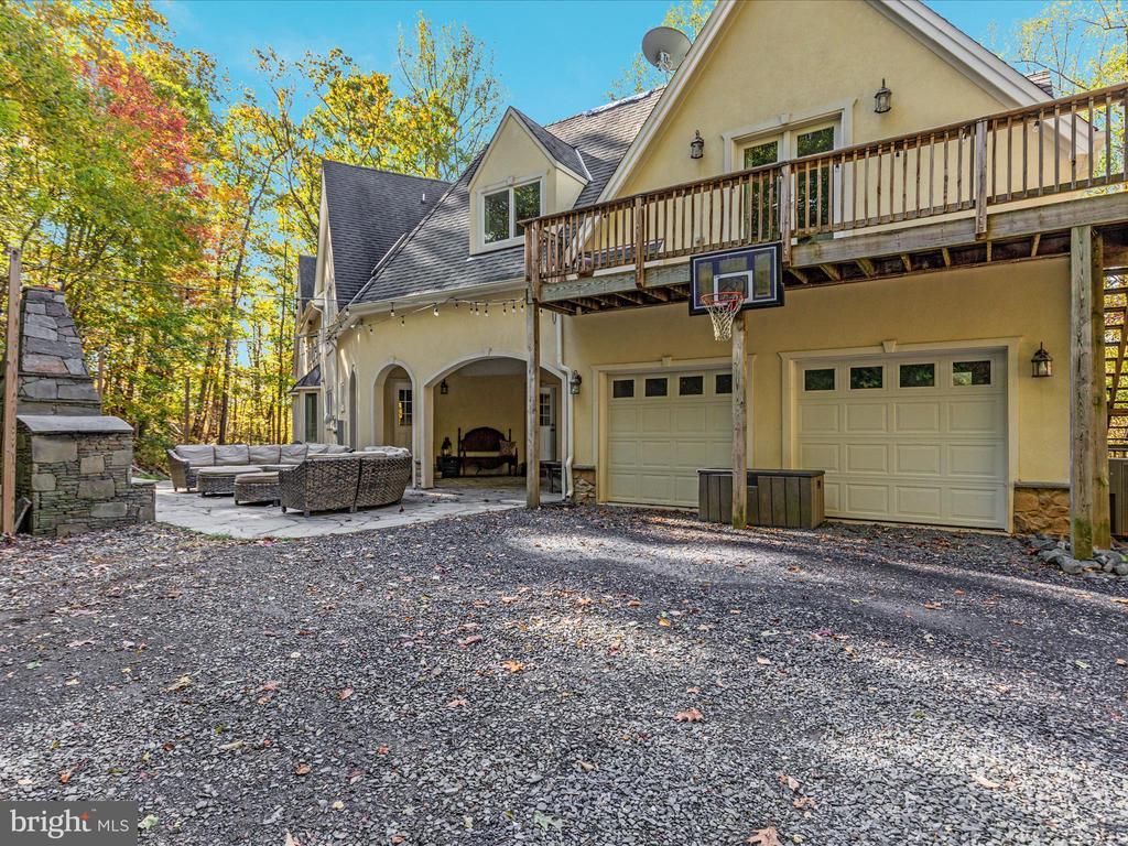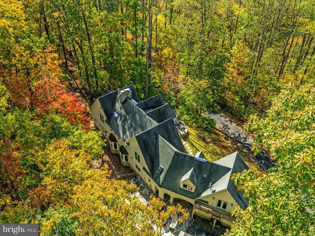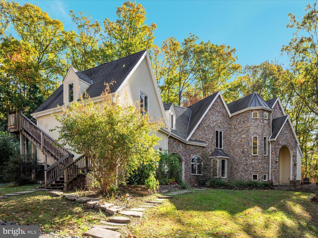 UNICORN ALERT! Freedom! No HOA! Custom French Colonial "castle" with exquisite architecture, stone masonry, and a Turn-Key Apartment over the garage with private exterior entry! Brand new roof! Serene setting nestled in the foothills of the Bull Run Mountains surrounded by olde growth hardwoods and aboundant wildlife. This sophisticated estate offers a singular opportunity to claim a luxury retreat on nearly five private acres in The Plains, an exclusive area of Fauquier County. This is not merely a home; it is an experience designed for grand living, dedicated work, and quiet repose. Dramatically designed floorplan boasts cathedral ceilings and soothing natural light throughout. The enormous gourmet kitchen is a true workspace, built for function with custom elements, including a built-in 6-burner Wolf stove and high-end commercial grade stainless steel appliances. The huge kitchen island is equipped with a functional salad sink, making it a true chef's dream. An immense Walk-In Pantry provides endless storage and easy access. The incredible two-story Great Room takes center stage, boasting soaring ceilings, an upstairs overlook, and a dramatic, floor-to-ceiling stone fireplace perfect for memorable entertaining. Finally, retreat to the luxurious main-level Primary Suite, which provides a peaceful escape complete with a sitting area, a second, inviting wood-burning fireplace, and a generous walk-in closet. The primary bath is expansive, featuring a soaking tub and double sinks. Ascend the staircase to the thoughtful upper level. To the right sits a massive private bedroom with a full bathroom next door. To the left, a layout built for flexibility; two additional bedrooms, a flexible bonus/flex room, and the crowning jewel: a fully finished Au Pair Suite with its own private exterior entrance, sitting conveniently above the garage. This home features ample parking including a two-car side-load garage connected to the home via a massive and breathtaking breezeway to the convenient side entrance, ushering you into a functional mudroom and main-level laundry space. The private apartment offers unparalleled potential for guests or family. Adding significant living space, the walk-out lower level was finished in 2025 to the highest standards. It features a sprawling, open recreation room (currently set up for media use) with striking built-ins, a wine fridge, and endless open space for fitness or play. This level includes a large private entrance bedroom with a true walk-out and direct access to a rough-in bathroom. An additional unfinished storage area ensures you have utility and storage space for all your needs. The exterior is defined by incredible hardscaping throughout the entire backyard and front yard. From the main house, step out onto the expansive patio, centered around an immense built-in fire pit and beautiful stone retaining walls. The acreage offers true country living possibilities with a huge, flat side yard, a chicken coop, and an adjoining running shed—perfect for your horses, pets, or passion for hobby farming. Stunning private views surround this meticulous estate.