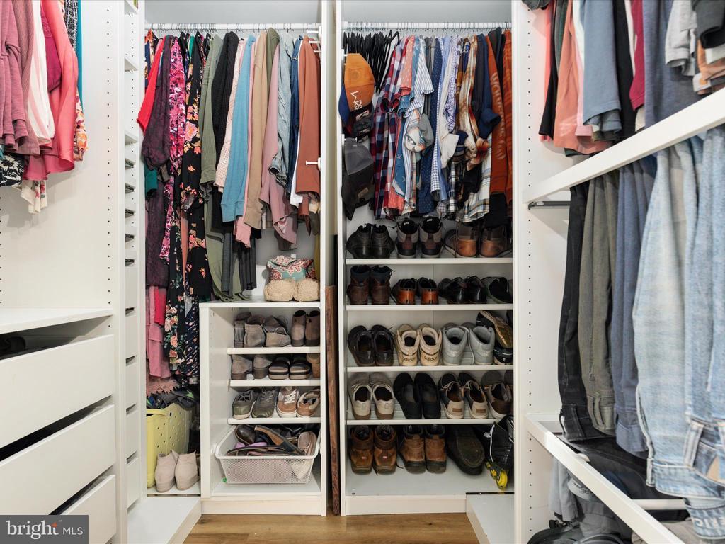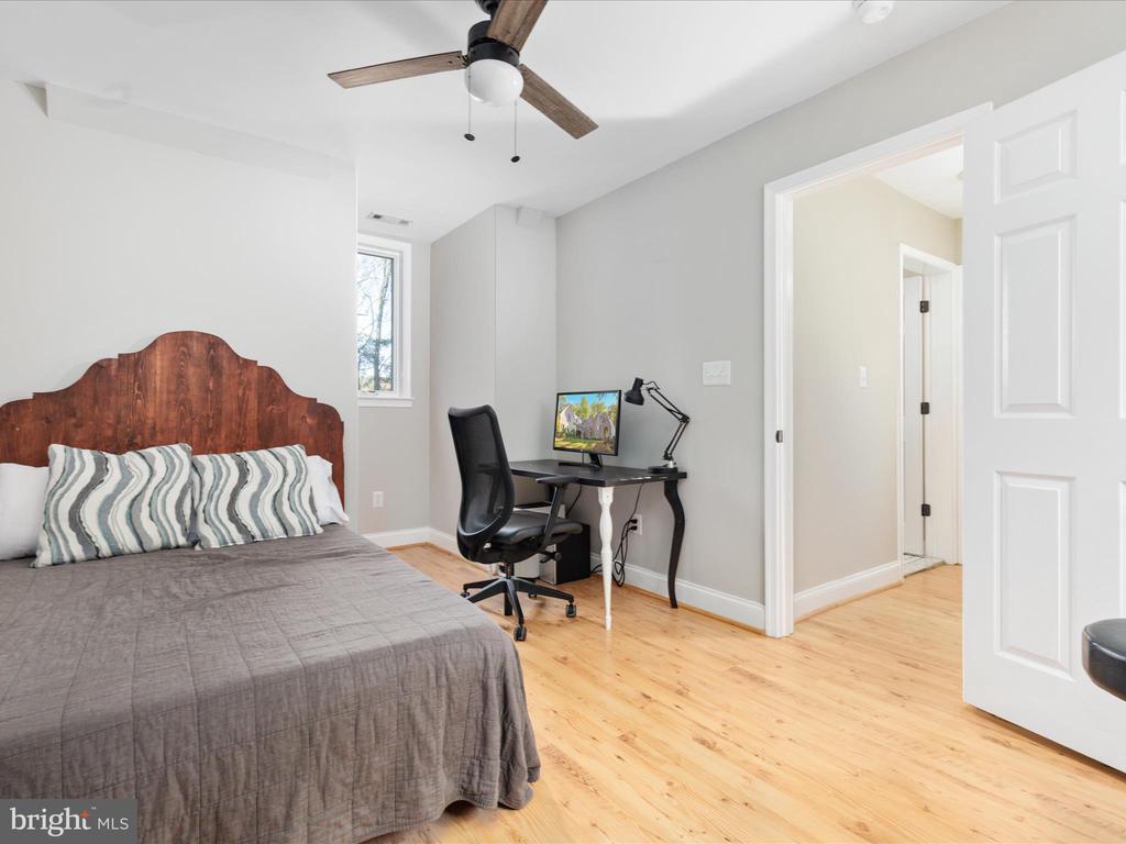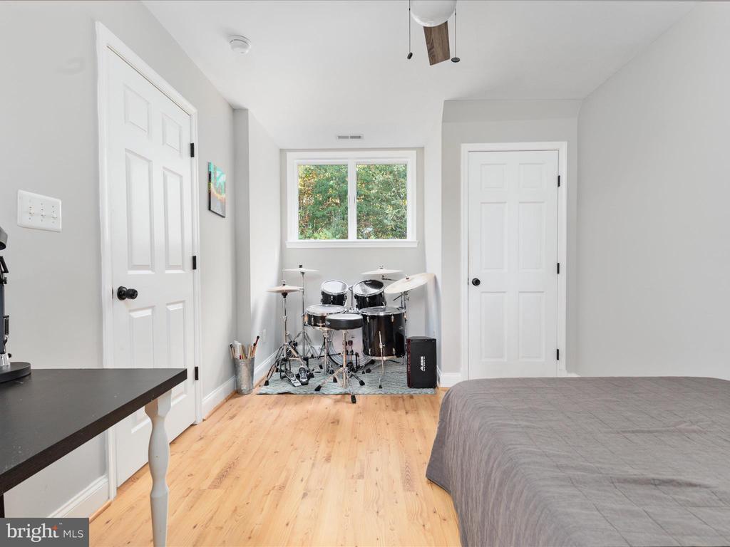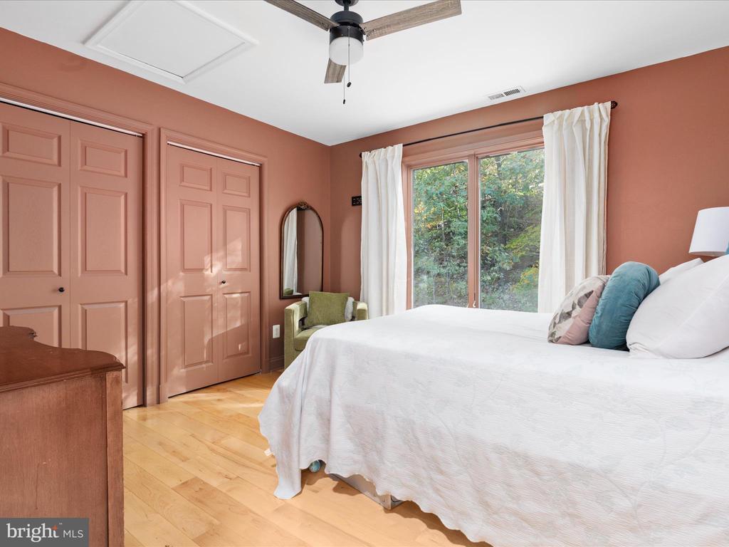 Attic, Stall Shower, Tub Shower, Built-Ins, CeilngFan(s), Entry Lvl BR, Master Bath(s), Recessed Lighting, Studio, Upgraded Countertops, Walk-in Closet(s), Wood Floors