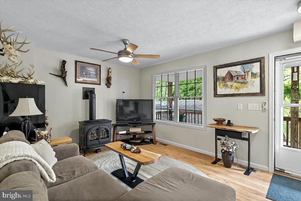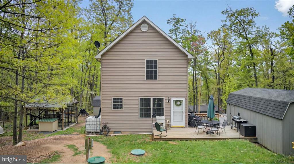 Wilde Acres offers peaceful country living just 15–20 minutes from Winchester City. The property spans three lots, for a total of approximately .75 acres, and features multiple outbuildings with power and heat. It's ideal for outdoor enthusiasts, nature lovers, and gardeners. The various outdoor spaces provide perfect areas for a workshop, recreation room, or extensive storage. This well-maintained property is move-in ready! A charming front porch leads you inside, where beautiful wood floors and a living room with a gas-burning stove await. The kitchen, complete with stainless steel appliances and a pantry for extra storage, overlooks the expansive yard. A spacious deck faces the tree-lined lot, offering a serene spot to relax. The property also includes an insulated building with a wood-burning stove and attached carport—perfect for storing utility vehicles and lawn equipment. You'll appreciate the convenience of an exterior generator plug and a garden equipped with both an electric fence and an electrical outlet. ** Lot sizes are approximate. Purchaser responsible for verification of exact size and measurements**