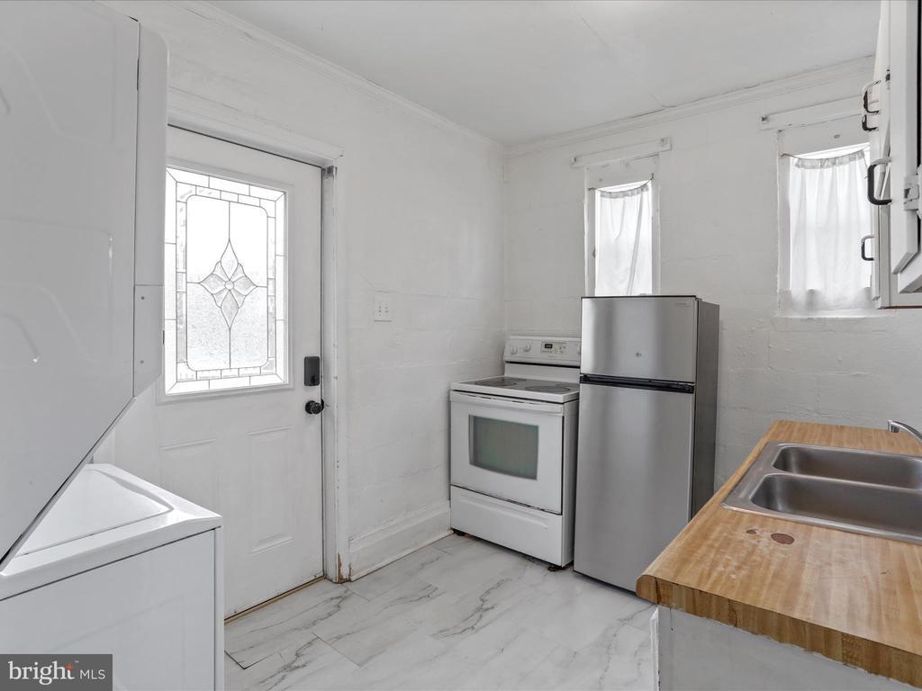 Refrigerator, Oven/Range-Electric, Washer/Dryer Stacked