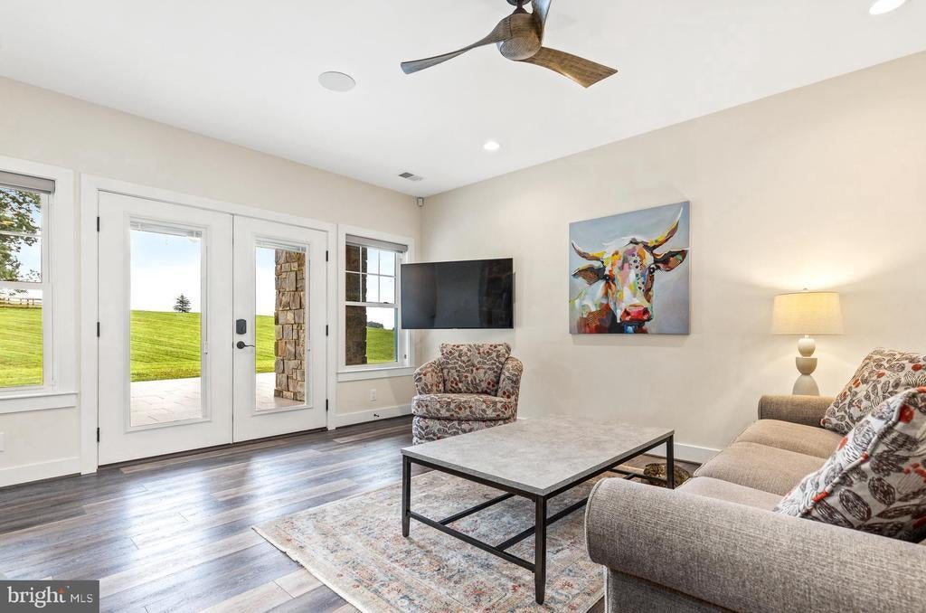 Turn-key and meticulously maintained, this 2021 custom craftsman home by well-reputed local builder Foreman Builders is thoughtfully designed and ideally sited on 3.85 acres, with views from every room. The light-filled interior (4,850 finished sq ft) features a flowing main-level layout, perfect for both entertaining and everyday main-level living. The vaulted Great Room centers around a wood-burning stone fireplace and opens to the rear deck through French doors. Host and chef alike will appreciate the kitchen with its large island, custom cabinetry, granite countertops, WiFi-enabled appliances, and wine fridge. The spacious primary suite offers two walk-in closets, a spa-like bath with radiant heated floors, rain shower, jetted soaking tub, and private deck access—perfect for morning coffee. Two ensuite bedrooms on the lower level share a second living room with a fireplace and open to the rear patio--an ideal private setting for a future pool. From there, access the gym that will inspire even the most reluctant. With flexible spaces throughout—including a dedicated office off the foyer, a bright finished bonus room over the garage, and additional lower-level space ready to be finished—this home easily accommodates remote work, schooling, or hobbies. A separate, stylish 1-bed/1-bath apartment provides excellent space for in-laws, an au pair, or rental income. See the Features List in the documents section for more details. Most of the furnishings are available for separate purchase. No HOA.