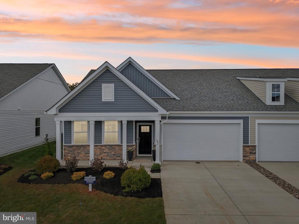 Experience effortless living in our Willow Run Active Adult community! Our Freeport floorplan is a thoughtfully designed villa blending style and functionality in a single-level open layout and finished loft. The moment you step inside the home; you will be greeted by an inviting foyer leading you into the heart of the home. The dining room seamlessly connects with the living room and kitchen, ideal for entertaining. The chef’s kitchen boasts stainless steel appliances, a walk-in pantry, and large island with a farmhouse style sink. From the dining area, step through the sliding glass door to a covered porch, perfect for outdoor gatherings or morning coffee. The main level also features three generously sized bedrooms and two modern bathrooms, including a serene owner’s suite with dual vanities, a tiled walk-in shower, and generously sized walk-in closet. Need space for visiting friends, family? The finished loft offers an additional 676 sqft. of a living space with a full bath, bedroom and storage closet. Completed with a large laundry room, two-car garage, and a low-maintenance lifestyle, the Freeport offers comfort and convenience. Embrace one-story living and make The Freeport your perfect new home! End of October/November Delivery! *Photos, 3D tours, and videos are representative of plan only and may vary as built.*