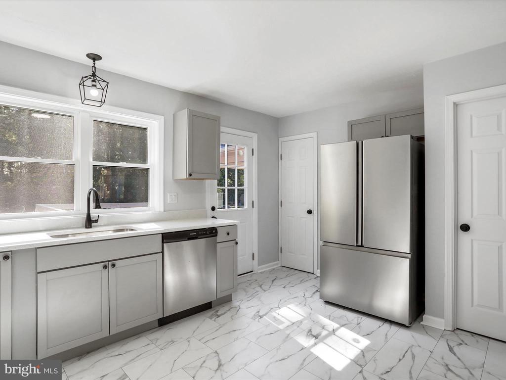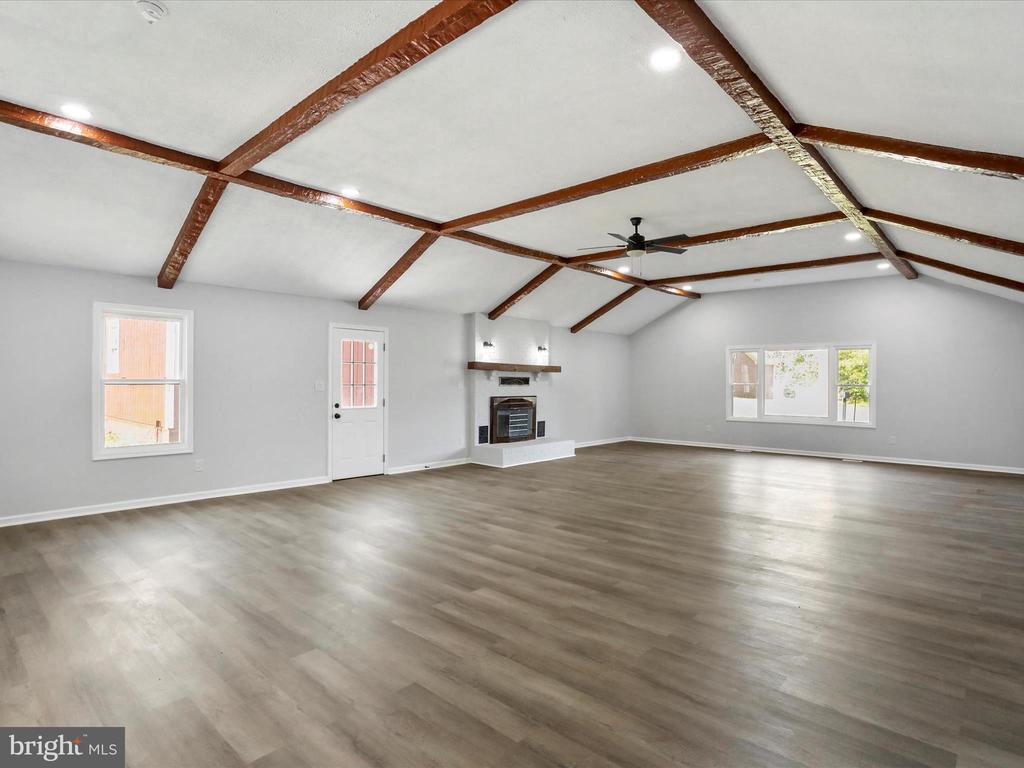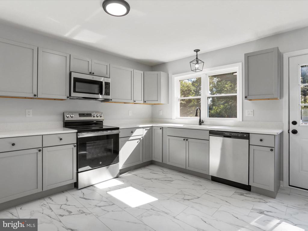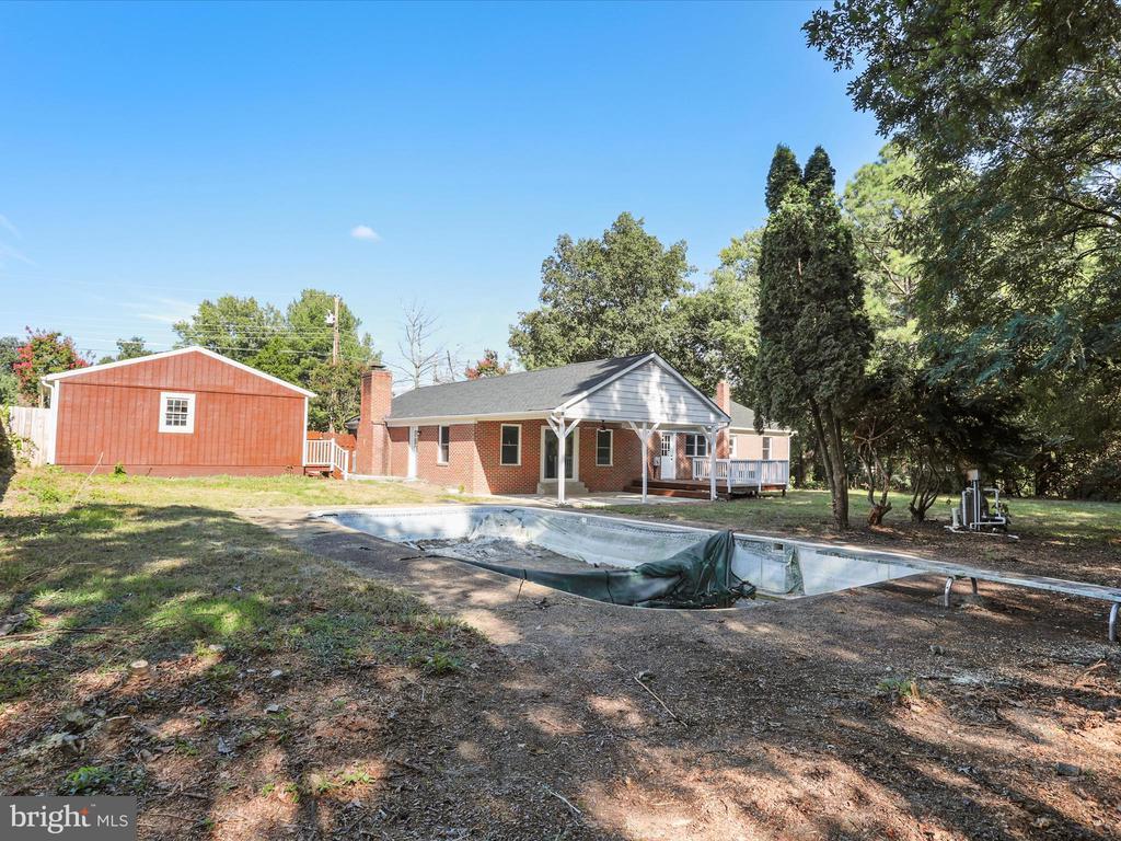 Welcome to this beautifully renovated brick rancher on a spacious 0.55-acre lot in a quiet neighborhood just outside Stephens City and Winchester. This move-in-ready 3-bedroom 1-bathroom home offers a perfect blend of modern updates and comfortable living. Step inside to find luxury vinyl plank flooring throughout, fresh lighting fixtures, and a completely updated kitchen featuring quartz countertops, stainless steel appliances, and plenty of cabinet space. A huge great room with cathedral ceilings, wood beams, and a cozy gas fireplace provides an inviting space for gatherings. A sliding glass door opens directly to the backyard, making indoor-outdoor living a breeze. The dining room just off the kitchen makes mealtime easy. The bathroom has been tastefully upgraded with a tiled shower, providing a fresh and clean look. The partially fenced backyard feels like your own private retreat. Imagine starting the day with coffee on the covered porch, spending afternoons floating in the inground pool, and ending evenings on the separate deck under the stars. The generous yard offers room for kids or pets to play, garden beds to flourish, and plenty of space for outdoor games and entertaining. A brand-new roof, new windows, and a 2-car detached garage provide peace of mind along with extra storage and parking convenience. This home is ready for you to enjoy all year round.