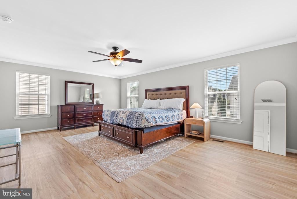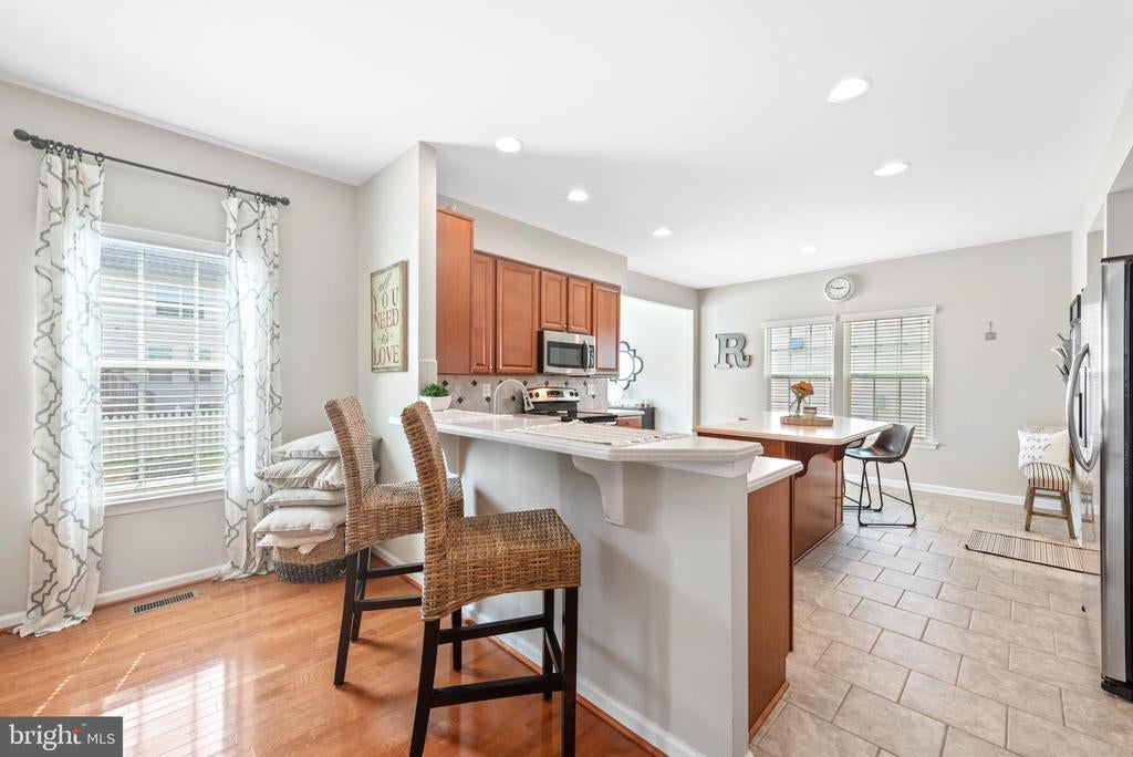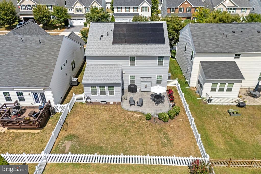 So many upgrades! New Roof in 2024! New Furnace in 2024. Tankless Hot Water Heater in 2023. Range/oven can be gas or electric! Solar Panels installed in 2024 = no electric bill! A $25k upgrade, yours at no extra cost! The main level features beautiful hardwood floors and a thoughtfully designed layout. You'll find a dedicated office space, a separate formal dining room, and a spacious living room centered around a cozy fireplace. The kitchen is equipped with stainless steel appliances, a gas range, a large island, and ceramic tile flooring, and connects to a light-filled morning/breakfast room that leads to the backyard. A convenient powder room is also located on this level. Upstairs, the upper level offers luxury vinyl plank flooring throughout. The large primary suite includes two walk-in closets and an en-suite bathroom with a soaking tub and a separate shower. This level also has three additional generous bedrooms, a second full bathroom, and a dedicated laundry room. The finished lower level provides a versatile space with a very large, carpeted rec room, currently set up as a media room and a playroom. The oversized unfinished utility room (upgraded with a tankless gas water heater!) provides ample storage space. Outside, the home has a fully fenced, level backyard featuring a large stone-paved patio, perfect for relaxing or entertaining. Enjoy all the amenities that Snowden Bridge has to offer, including a recreation center with an outdoor pool, indoor tennis and basketball courts, walking trails, playgrounds, and a picnic pavilion. Don't miss the opportunity to own a home with paid-for solar panels that will save you money for years to come!