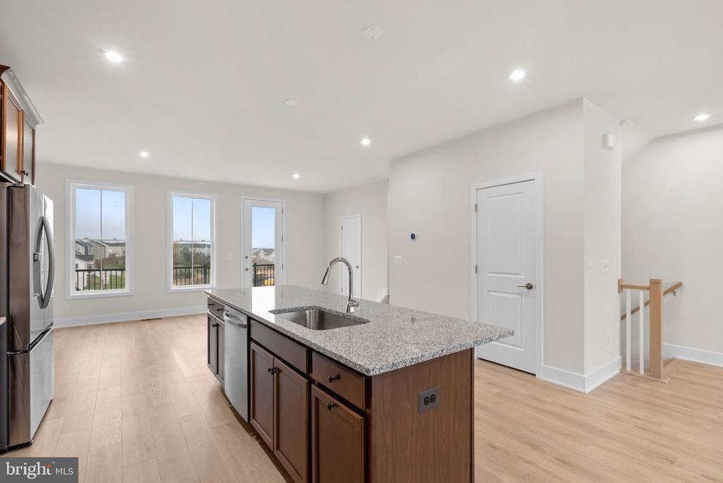 Welcome home to your brand-new townhome with stylish upgrades and modern living by Van Metre Homes in the highly sought after Snowden Bridge community! The Teagan 24-F2 model boasts three spacious levels with 2,366 finished sq ft of living space and a 2-car garage. Step into this stunning 3-bedroom, 2 full bath, 2 half bath townhome, perfectly designed for comfort, convenience, and style. Every detail of this home has been carefully crafted with today’s homeowner in mind, offering thoughtful upgrades and beautiful finishes throughout to include oak stairs, floor outlets, ceiling fan rough ins, 9 ft ceilings and LED disc lights. As you enter the foyer, you will find the walk-out rec room with a half bath expanding your living space, offering flexibility for a media room, playroom, home gym, or office. From here, step directly onto the patio for even more outdoor living options. The heart of the home is the kitchen, featuring stainless steel appliances, granite countertops, a central island, upgraded cabinetry, walk in pantry with wood shelves and a spacious layout perfect for both everyday living and entertaining. The kitchen flows seamlessly into the dining area, where you can step out onto the deck—a great spot for grilling, relaxing, or enjoying morning coffee. The open-concept great room is bright and welcoming, making it perfect for entertaining. Here you will also find your cozy reading nook to unwind after a long day. Upstairs, you’ll find three spacious bedrooms with plush carpet and upgraded padding for added comfort. You will also find the laundry conveniently placed on the upper level, along with another full bath. The primary suite offers a private retreat with its own full bath and a walk-in closet. This brand-new townhome combines quality construction with premium upgrades, giving you the modern lifestyle you’ve been looking for and comes with a post-settlement warranty! Move in and start enjoying all the comforts of your new home and all the amenities Snowden Bridge has to offer, which include walking paths, a dog park, pool and splash park, sportsplex, playgrounds, bike track and an on-site daycare! Don’t miss this opportunity—schedule your showing today!