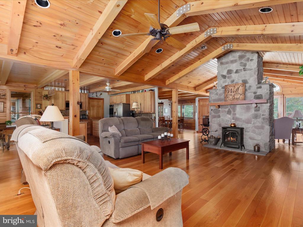Escape to your own private retreat! This custom log home on 21 wooded acres offers space, comfort, and endless outdoor enjoyment—without the restrictions of an HOA. Featuring over 3,200 sq. ft. on the main level plus 1,600+ finished sq. ft. in the walkout basement, this home provides room for everyone. Inside, you’ll find 4 bedrooms, 3 1/2 baths, and 2 fireplaces, along with an outdoor wood furnace for efficient heating. The lower level is an entertainer’s dream with a wall of windows, bar area, huge recreation room (pool & ping pong tables convey), a full bedroom and bath—ideal as an in-law suite or guest space. Step outside to enjoy the beauty of the land with two ponds (one stocked with bass), wooded trails, and plenty of space to explore. Car enthusiasts and hobbyists will love the abundance of garage space: two attached garages plus a detached 3+ car garage with oversized door—perfect for RVs, boats, or equipment. A rare opportunity to own a property that truly has it all—privacy, recreation, and a stunning log home to match. **PLEASE NO DRIVEBYS** Property is in forest perserve - it was renewed in 2023 - renews every 10 years, so taxes are low.
