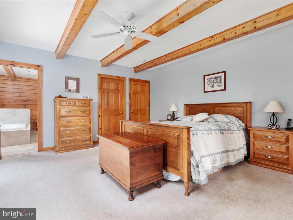 Carpet, CeilngFan(s), Entry Lvl BR, Exposed Beams, Formal/Separate Dining Room, Master Bath(s), Pantry, Recessed Lighting, Upgraded Countertops, Walk-in Closet(s), Water Treat System, Wet Bar/Bar, Shades/Blinds, Wood Floors