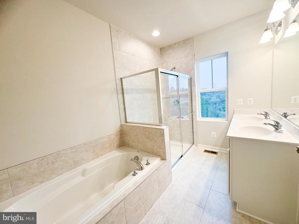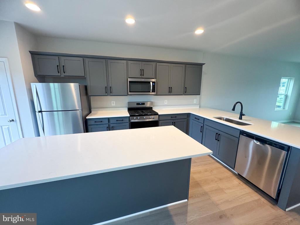 Brand New End Unit Townhome with rear views of mature trees and an entry level 4th bedroom, is Ready for Move In! Enjoy the three-finished and extended levels that make up this end unit townhome, with natural light streaming through the generous windows in the living room. The main level features an open-concept design, seamlessly connecting the living room, dining area, and kitchen. The rear kitchen modern grey cabinets, quartz countertops, and a super island. It opens up to a charming breakfast nook, creating the perfect setting for daily life and entertaining. Head up the staircase to the upper level to the primary suite with a large walk-in closet and en suite with soaking tub. Additionally, there are two secondary bedrooms, a full bath, and a conveniently located laundry area to complete the upper level. This expanded lower level creates the perfect guest retreat, complete with a bedroom featuring a large walk-in closet, and a private en-suite bath. A rear deck completes this perfect home! Located in Snowden Bridge, a premier master-planned community with exceptional amenities including a swimming pool, pirate water park, indoor sportsplex, community park, fenced in dog park, and playground. In addition, there is a bike track, walking trails, and a picnic pavilion. You won’t have to leave to have fun, but when you do, you’re just minutes from all the convenience and entertainment around Winchester. Ask about special fixed rate financing and closing costs!