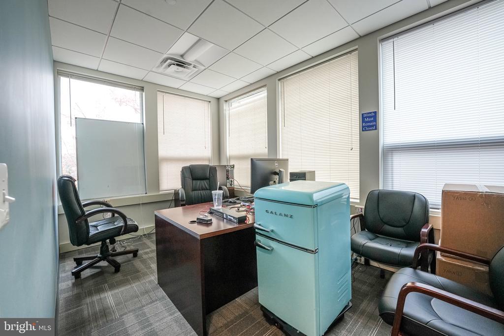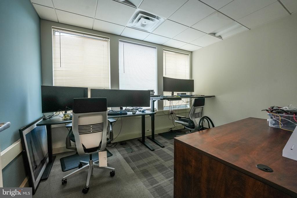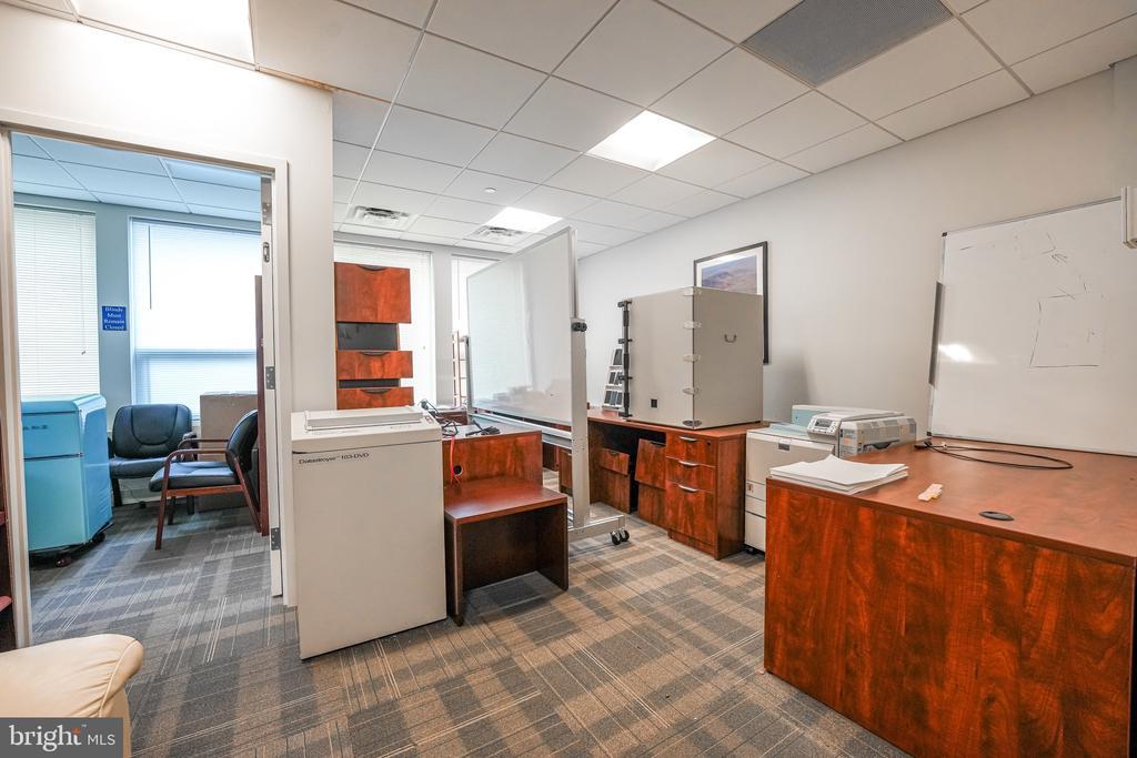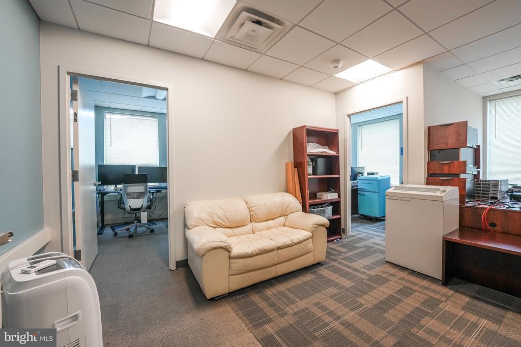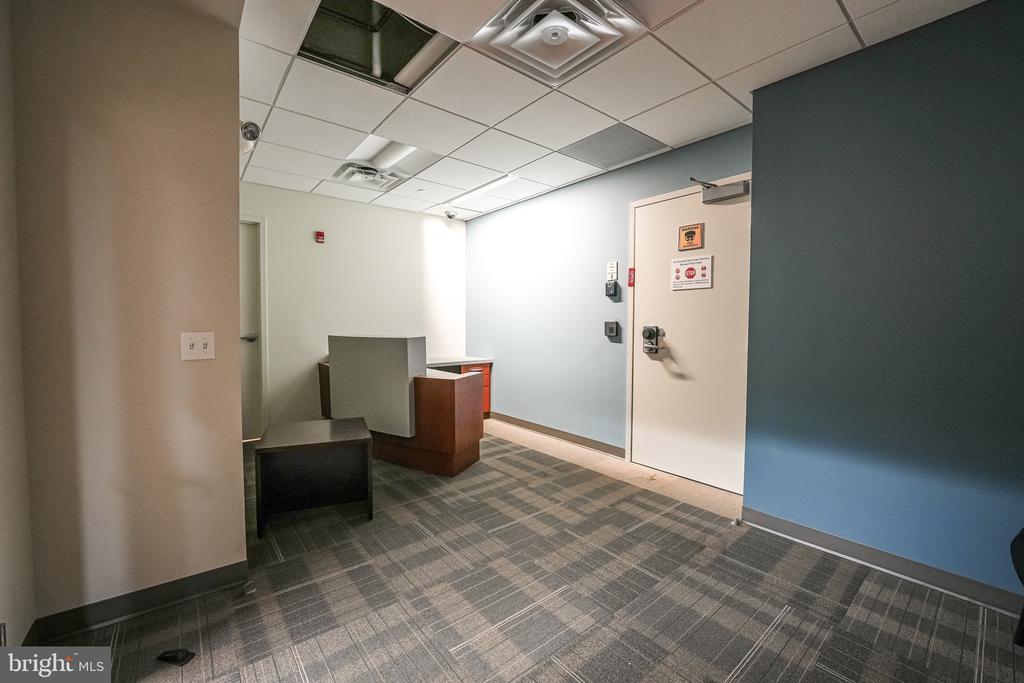 This exceptional commercial property located in West Metro Plaza offers a facility purposefully designed to meet the security standards for the handling of classified information. Previously two office suites, it has been combined into a spacious 3101 sq ft layout featuring a generous reception area, four private offices, conference room, kitchen, data storage and additional supply storage. The space is constructed in compliance with ICD 705 standards, ensuring a secure environment for government agencies, defense contractors, or other entities requiring stringent confidentiality measures. Featuring reinforced construction, sound masking technology, tamper-resistant entryways, and advanced intrusion detection systems, the facility is equipped to protect against physical and electronic threats for sensitive operations while maintaining strict access control protocols to safeguard authorized personnel and classified materials.