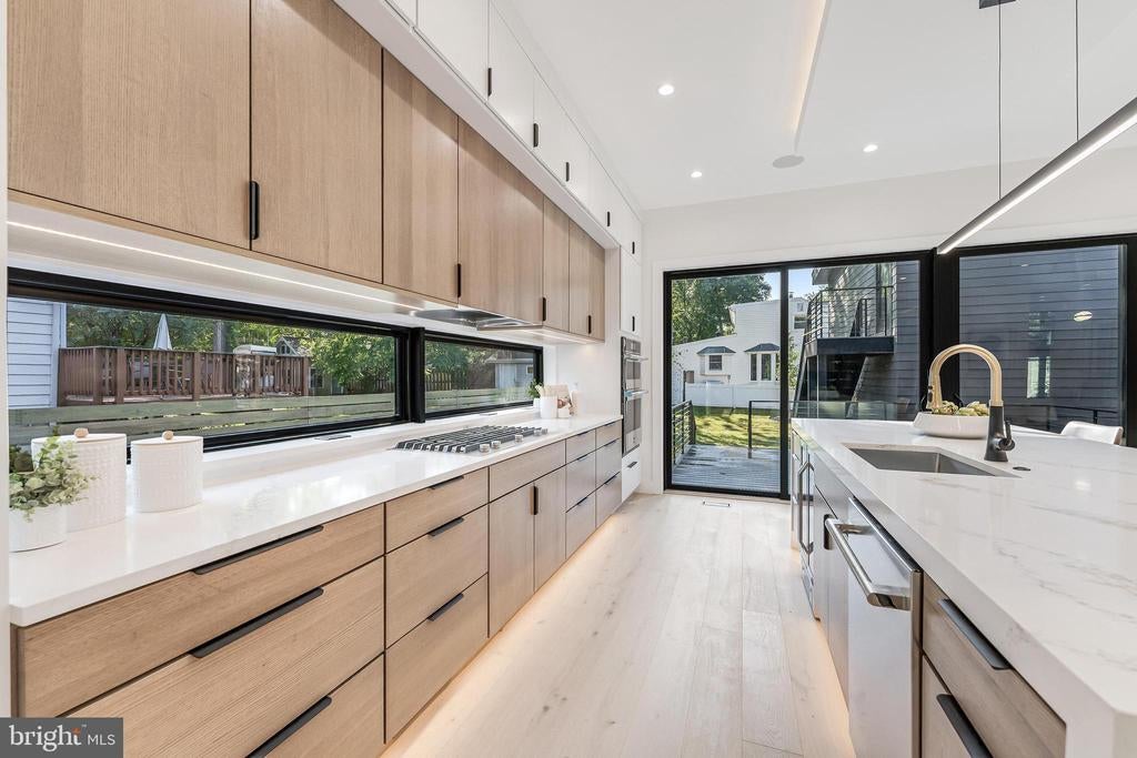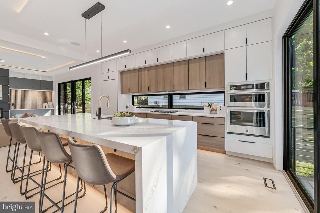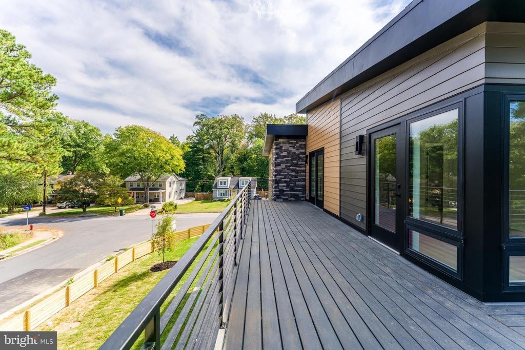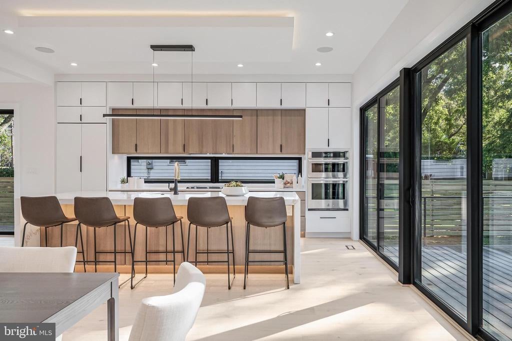 Welcome to this one-of-a-kind dwelling which blends mid-century exterior form with modern interior design. It was expertly crafted by NextDayRemodeling and designed by Axis Architects and backed by a Builder's Warranty. This striking 5,600 SqFt custom build is situated on 1/3-acre premium, fenced corner lot, with a 400 SqFt apartment loft atop the detached garage (22'x20'). It spans 3 levels with 5 bright bedrooms and 5 luxurious baths (main house). Garage parking for 2-cars, plus 4-car driveway, and 6-car curbside! This home features an unrivaled open-concept plan perfect for modern living and entertaining. The stunning living room boasts 10-ft inverted tray ceiling with LEDs, Bluetooth ceiling speakers, fireplace accent wall, and deck access. The gourmet kitchen features 10-ft waterfall quartz island, JennAir stainless appliances, two-tone cabinetry, walk-in pantry, and sgd to a second Trex deck. On the main level, there is also an office, bedroom, and full bath. Next to the dining area is a side door that leads to the mud room with a built-in bench and a pet washing station. A dramatic floating staircase with a corner wall of windows leads up to the vaulted family room with 15-ft ceiling height, skylights, and balcony access door. The primary suite features floor-to-ceiling windows, luxurious soaking tub and shower, walk-in closet, dry bar, and private access to the balcony. Two other ensuite bedrooms and a separate laundry room complete the upper level. The open basement boasts a large recreation area, gym, wet-bar, ensuite bedroom, and walk-up stairs to the rear yard. The Bel Air neighborhood is tucked away yet minutes from major highways, I-495, I-66, Rt 50, East Falls Church Metro, and key destinations, such as, the Mosaic District, Tyson's Galleria, and Inova Fairfax Hospital.