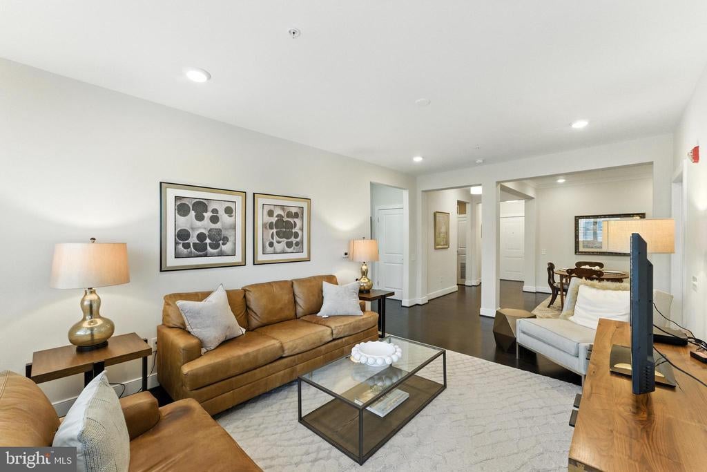 Top-floor living, model-home finishes, and steps to the Vienna Metro — this pristine condo checks every box. Immaculately maintained and move-in ready, this former builder model at The Flats at MetroWest delivers the ideal blend of luxury, convenience, and style in one of Fairfax’s most sought-after locations. With nearly 1,400 square feet of thoughtfully designed space, this 2-bedroom, 2-bath plus den condo lives large. Soaring 9-foot ceilings, wide-plank hardwood floors, and oversized windows flood the space with natural light. The open-concept kitchen features granite countertops, gas cooking, and stainless steel appliances, seamlessly connecting to the dining and living areas and out to a private balcony. The primary suite is a peaceful retreat, complete with a spacious walk-in closet, dual vanities, a walk-in shower, and a flexible den space—ideal for working from home or relaxing. The second bedroom is thoughtfully positioned on the opposite side of the unit for maximum privacy. Additional features include a commercial-grade in-unit washer and dryer, designer window treatments, a low condo fee, and a dedicated garage parking space ideally located next to the elevator. Enjoy a vibrant, low-maintenance lifestyle with shopping, dining, and entertainment just minutes away—including Mosaic District, Tysons, Downtown Fairfax, and all major commuter routes. A true turnkey opportunity in a prime location.