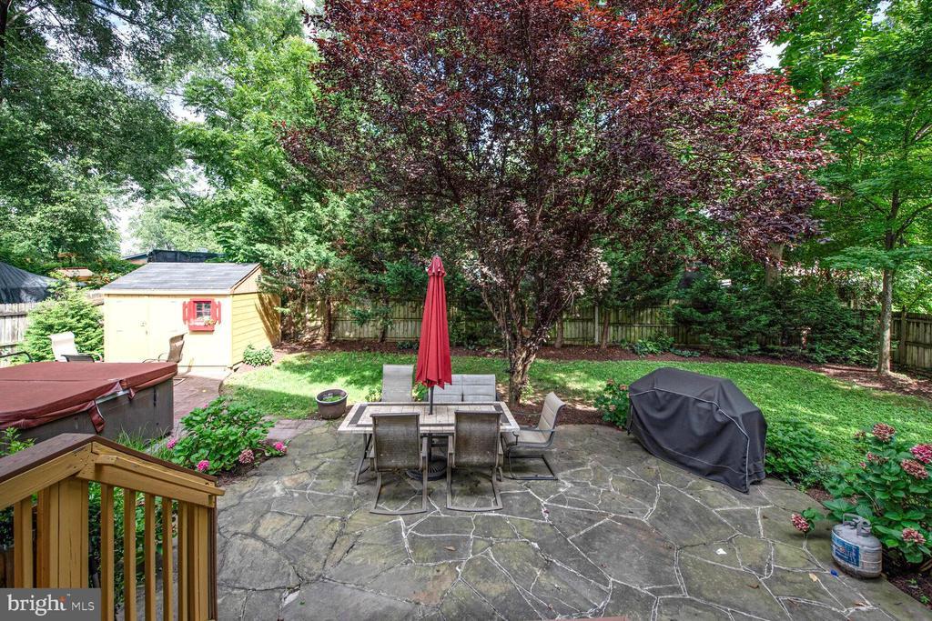 Extensive Hardscape, Gutter System, Porch(es), Fenced-Rear, Fenced-Fully, Hot Tub