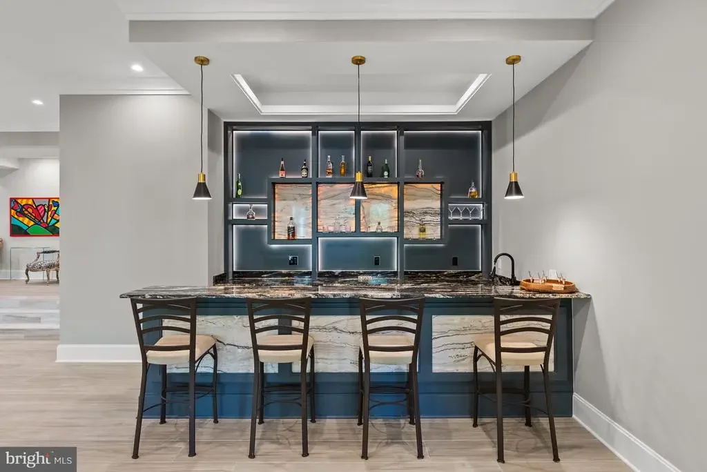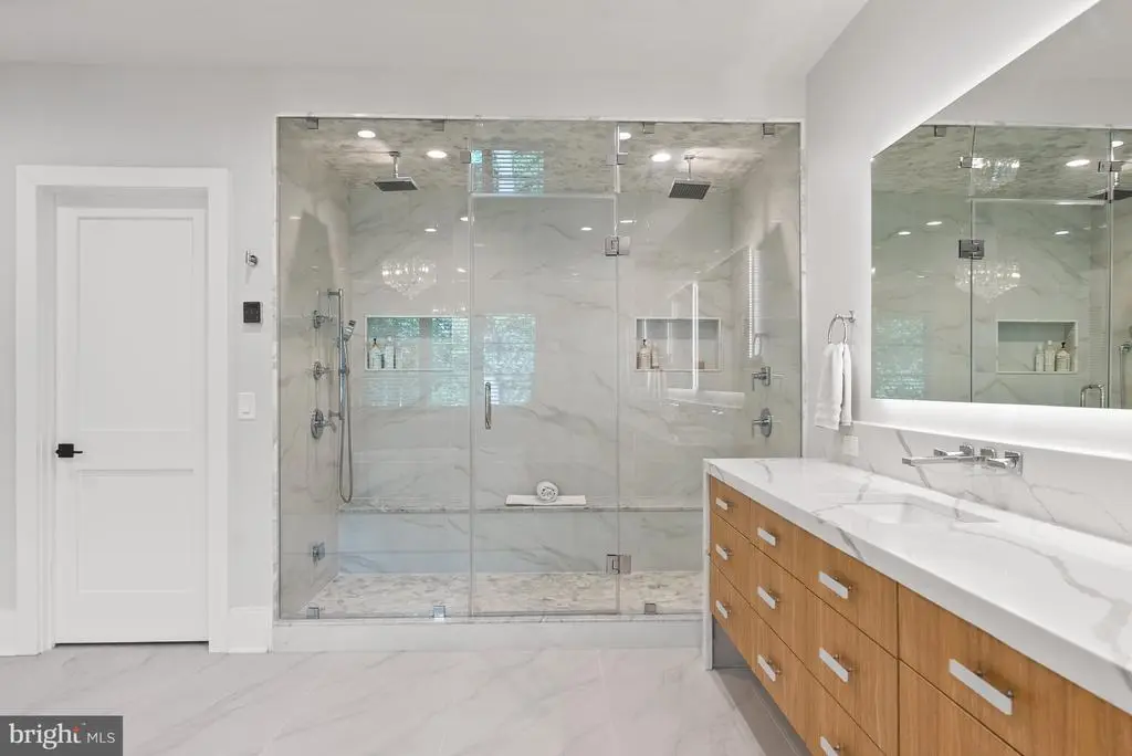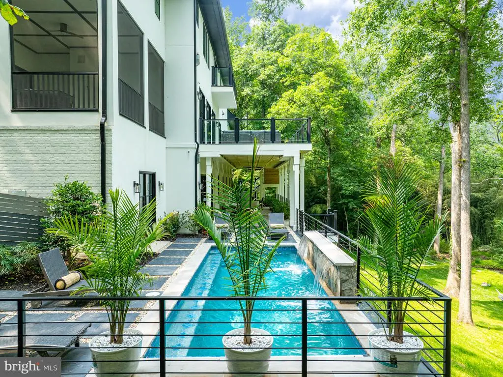 Tucked within the highly sought-after Langley Forest neighborhood, this stunning custom brick and stucco estate sits on 1.47 professionally landscaped acres. A private, park-like oasis complete with a picturesque stream that offers serene, scenic views all year round. Enhancing the retreat-like atmosphere is an infinity saltwater pool with elegant fountains, perfect for both relaxation and entertaining. Spanning over 11,000 square feet, this luxurious residence offers modern amenities, a four-car garage with soaring 15-foot ceilings (ready for car lifts), and an elevator serving all levels. Inside, the gracious foyer opens to formal living and dining rooms, while the inviting family room with fireplace seamlessly connects to an expansive deck overlooking the grounds. The chef’s kitchen is adorned with top-of-the-line appliances, including a built-in espresso machine and beverage chiller, plus the bonus of a full prep kitchen for effortless entertaining. Also on the main level is a private office, screened porch, and a mudroom with custom built-ins. Upstairs, the owner’s suite is a true sanctuary, complete with a cozy sitting room and fireplace, private balcony, dual walk-in closets, and a dream worthy bath featuring heated floors and a steam shower. Four additional en suite bedrooms and a convenient laundry room complete the second floor. The walkout lower level is designed for recreation and relaxation, offering a wet bar, fitness room, media room, bedroom, full bath, half bath, and a roughed-in space for a potential second laundry or kitchenette. Step outside to the covered porch and take in the pool, firepit, and golf putting green, all set against the tranquil backdrop of the gently flowing stream. Property includes a generator. Perfectly located inside the Beltway, this exceptional home offers easy access to top-rated schools, world-class shopping and dining, and major routes including the George Washington Parkway, Dulles Toll Road, and I-495. (**Images of optional sauna and laundry room are artistic renderings for illustrative purposes only. Features depicted are optional, available at an additional cost, and may differ in style or finish from the final product.)