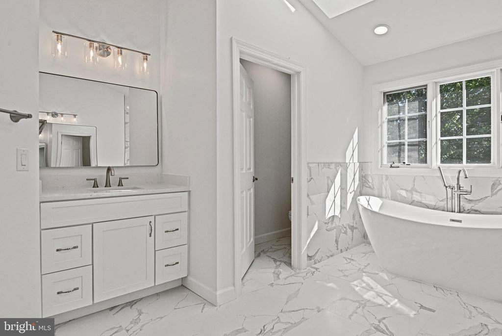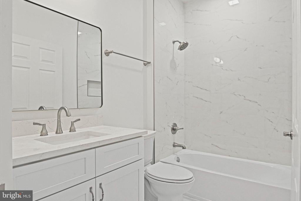 Beautiful, bright, and newly updated, brick Colonial, on three spacious, fully-finished levels, in Vienna's sought after Courthouse Commons! Be sure to check out the Virtual 3D, click-through tour link provided! Located on a premium pipe-stem, cul-de-sac, end-lot, you'll enjoy additional privacy, yard space, HOA lawn care/maintenance, snow removal, and parking for up to five vehicles, provided by the large, two-car garage (with extra-high ceilings), and the wide/expansive driveway, also great for basketball, roller hockey, and other activities! Guest parking is located just nearby if needed. As you enter the home, the open foyer greets you with abundant light from the many large windows, wood flooring throughout the main-level, lofty two-story ceilings, and an inviting, open living/seating room with bay window. The open concept, gourmet kitchen is centered by a spacious island/breakfast bar, and includes gleaming counters, plenty of generous cabinets, drawers, and a pantry for all your storage needs. Stainless-steel appliances include refrigerator, double wall ovens, built-in microwave, induction stovetop, and dishwasher. Enjoy coffee and relaxing meals while looking out the bay window of the informal dining/table space off the kitchen, or for formal occasions, the separate dining room, which can be easily doored to become a main level bedroom or office/study. Entertain guests or curl up with your favorite book and beverage in the lovely family room. Open to the kitchen, it features two-story ceilings, extra large windows, a gas fireplace with glass screen, marble hearth and mantle, and windowed door, providing access to a grilling deck and the rear yard. The upper-level features a large primary suite, complete with new wood flooring, ample space for an in-room lounge or office, and two separate, custom, walk-in closets. You'll find it easy to pamper yourself in the all new, luxury, primary en-suite bathroom, featuring all new premium fixtures, a free-standing soaking tub, large walk-in shower, and two separate vanities. In addition, the upper level includes three full-size bedrooms, each with generous closets, new full-size bathroom, new flooring throughout, and separate laundry room, complete with linen closet and shelving for storage! The enormous, fully-finished basement includes a den/theater room/guest space, all new full bathroom, and provides tons of open, versatile space to live, work, and play! Live nearby the many parks, playgrounds, entertainment, and all Vienna has to offer, including historic Church Street, with its excellent, local shops, cafes, and restaurants. Enjoy proximity to great events for all, like farmer's markets, Viva Vienna, and Chillin' On Church! Fashion, retail, and grocers abound such as Tysons Galleria, Tysons Corner, Starbucks, Whole Foods, Fresh Market, and Trader Joe's! Get anywhere quickly with easy access to Vienna Metro (Orange & Silver Lines), Washington D.C., Dulles & Reagan Airports, Union Station, the W&OD Trail, all major highways, express lanes, and plenty of other options. Brand new roof, with architectural shingles, includes a lifetime warranty and 5 year workmanship warranty, transfers to the new owner! New bathrooms include all new vanities, tile, toilets, and hardware. Electrical updates include all new Decora switches and outlets! New HVAC heat pump/compressor installed about 2 years ago. New water heater installed about 5 years ago. New appliances include induction cooktop, dishwasher, and others replaced about 5 years ago. Welcome to this wonderful community and home!
