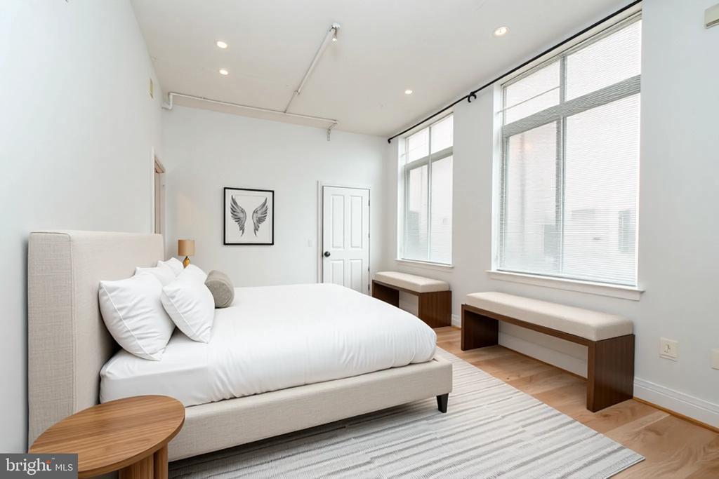 Modern Luxury 2BR/2BA at Elan at East Market Condos, Fairfax! Experience elevated living in this sun-drenched modern corner unit with 10+ ft ceilings and open-concept design. Gourmet kitchen features granite countertops, shaker cabinetry, stainless steel appliances, and breakfast bar. Both bedrooms offer en-suite baths, walk-in closets, and upgraded finishes; primary suite includes a spa-like jacuzzi tub. Enjoy indoor/outdoor flow with large windows and private balcony. Includes 2 premium garage parking spaces. Resort-style amenities: pool, fitness center, courts, clubhouse, business center, and Metro shuttle. Condo fee covers gas/water. Prime location across from Whole Foods, near shops, dining, and major commuter routes.