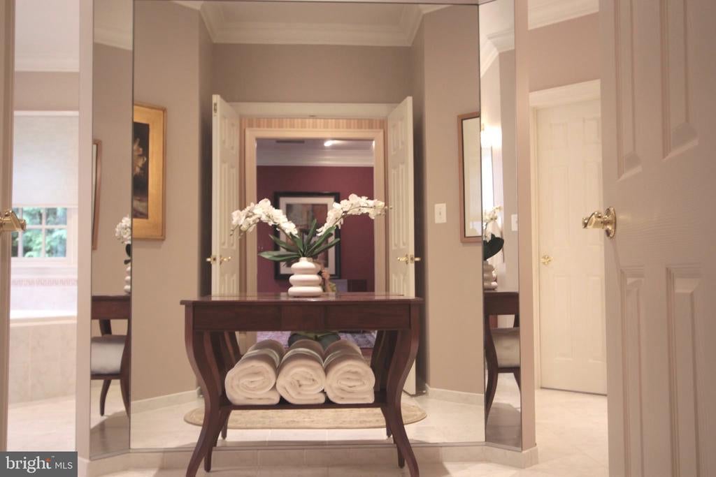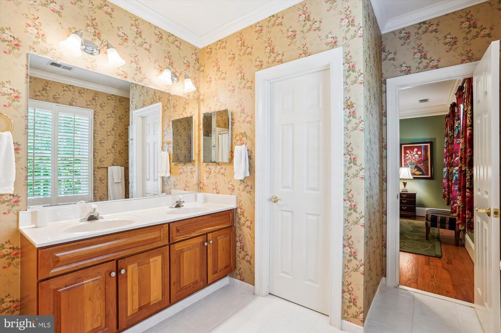 Prepare to be amazed… A HOME OF DISTINCTION... Quality in the details. Craftmark Rosewell model with custom features throughout, in the cloistered community of Williamsburg Commons. This is a private enclave where you can enjoy an exquisite life & a unique sense of belonging. Hard to believe you’re just a short walk to the Vienna Metro. This elite gated community is a well-kept secret: 38 homes are thoughtfully sited around a colonial-style green, encouraging a sense of community. Each home is unique and curated to perfection. … Enjoy the freedom to turn the key and leave on vacation, confident in the security of your home, nestled in this elegant leafy gated retreat. A sense of tradition envelopes you as you pass through the transomed front door with sidelights into a welcoming Foyer. With exquisite architectural details, this home exudes quality and attention to detail. Deep Crown molding and gleaming hardwood flooring span 2 levels. A columned Living Room overlooks the green and is open to the formal Dining Room where a 2-tiered chandelier will cast a warm glow on your dinner parties, while art spotlights throughout the home will showcase your collection. The gourmet kitchen will impress the most discerning chef with an abundance of cherry cabinetry, the granite countertop providing seemingly endless prep space, & the copper backsplash creating a stunning ambiance. The pantry is outfitted with an organizing system and easily holds all the ingredients for your next dinner party. The Kitchen is well-appointed with high-end SS appliances... a Viking 6 burner Gas range with grill and range hood and a Sub Zero built-in refrigerator. A wine cooler stores a selection of wines from your lower level wine cellar (about 2,200 bottles!). The Family Room is stunning, presenting a gas fireplace with a handsome mahogany surround. Art spotlights showcase your favorite pieces. A main level Study offers a quiet spot to look out over the green to catch up on some work. An elegant Powder Room completes the main level. Two staircases ascend to the upper level, one from the foyer & a private staircase from the Family Room. The upper level offers crown molding & hardwood flooring. The spacious landing is an ideal reading nook or gallery space. An enormous Primary Suite with Sitting Room, Dressing Room & 3 walk-in closets with organizers creates a private retreat. The Primary Bath is spa-inspired & exudes quiet luxury, offering a boutique-style triple mirrored entry, walk-in shower, soaking tub, 2 cherry vanities and a private water closet. There are 3 spacious ancillary Bedrooms (2 with walk-in closets). One enjoys a private Bath and 2 share a Jack 'n Jill Bath. The windowed Laundry Room rounds out the upper level. The expansive lower level offers a large Rec Room, Game Room, Den/Guest Room with walk-in closet (with organizer), attached Full Bath and (the piece de resistance!) Wine Cellar. Enter the Wine cellar through a stunning winery-style wood door to walls of redwood racking for approximately 2,200 bottles. A central tasting table with even more redwood racking is adorned with a granite top. The room is cooled so your wine is properly stored to age so you can grab the perfect bottle for every occasion. There is more than ample storage space reserved and plenty of shelving for all your seasonal items. Outdoors you’ll find perennial gardens, a brick Patio & a community green lined with trees, garden beds & charming garden benches. The community also enjoys a pool & pool house. The cloistered community of Williamsburg Commons, a private enclave where you can curate life on a higher plain. Hard to believe you're just a short walk from the Vienna Metro, Tysons & easy commute to DC and Dulles International Airport. Oakton High School. Live life as it was meant to be enjoyed!