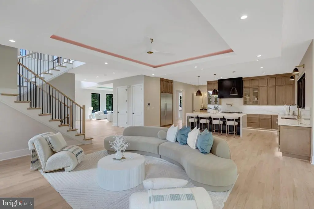 Discover modern luxury with this stunning prairie-style home, expertly built by Green Valley Custom Builders—recipient of ***Designed and built by Green Valley Custom Builders - 2024 & 2025 NVBIA Award Winner for Best Design and Architecture in the $3.5M - $5M Category!*** Designed to seamlessly blend sophistication with functionality, this 7,794 sq ft residence sits on a professionally landscaped 0.30-acre lot, offering expansive sightlines, abundant natural light, and thoughtful space planning throughout. This exceptional home features 6 bedrooms, 6 full bathrooms, and 2 half bathrooms, along with a 2-car garage and EV-ready infrastructure. The main level showcases soaring 10-foot ceilings, a dramatic two-story foyer, and a spacious, sun-filled study. A pre-framed elevator shaft offers future upgrade potential. At the heart of the home is the open-concept kitchen and family room, complete with a gas fireplace, premium Thermador appliances, a quartz-topped gourmet island, and a large built-in pantry. A sunroom adds warmth and versatility, while a main-level guest suite with a full bath and curbless shower provides accessibility—perfect for multi-generational living or visitors with mobility needs. Two covered porches on the main level—a welcoming front screened-in covered porch and an expansive rear composite deck—allow for effortless indoor-outdoor living year-round. Upstairs, the luxurious owner’s suite offers a serene retreat, featuring a sitting area, private balcony, and coffee bar. The spa-style bath includes an oversized curbless steam shower with a bench, dual rain showers, jet sprays, and heated floors. His-and-hers walk-in closets provide generous, elegant storage. Three additional bedrooms—each with a full en suite bath and walk-in closet—ensure privacy and comfort for all. A versatile loft adds a casual gathering space for relaxation or entertainment. The finished walk-up basement extends the living area with a large recreation room, modern wet bar, custom wine shelves, and a gas fireplace. This level also includes a bedroom with a full bath, a media room prewired for 7.2.4 surround sound, and an exercise area. Practical enhancements include a mudroom with built-in cubbies, a pet wash station, and a dumbwaiter to the main level for added convenience. Green Valley Custom Builders is a local luxury home builder committed to more than just building beautiful homes. They create inspired living spaces designed for comfort, connection, and meaningful living. Every home showcases exceptional craftsmanship, transparency, and sustainable practices, thoughtfully tailored to elevate your lifestyle and become the setting for a lifetime of memories. Located in the heart of McLean, this home offers quick access to Tysons, Washington, D.C., and major airports—ideal for commuters. It is also zoned for the highly acclaimed Fairfax County Public Schools: Kent Gardens Elementary, Longfellow Middle, and McLean High School. Contact the listing agent today to schedule a private tour. Don’t miss your chance to make this award-winning home your forever dream residence!