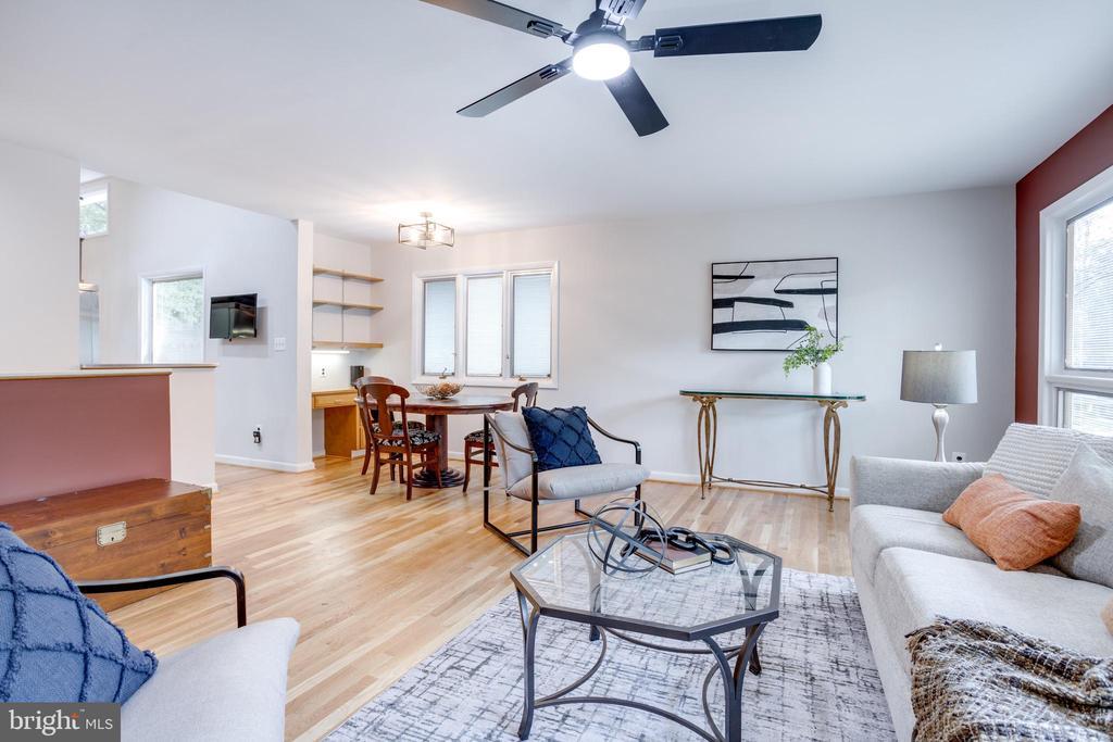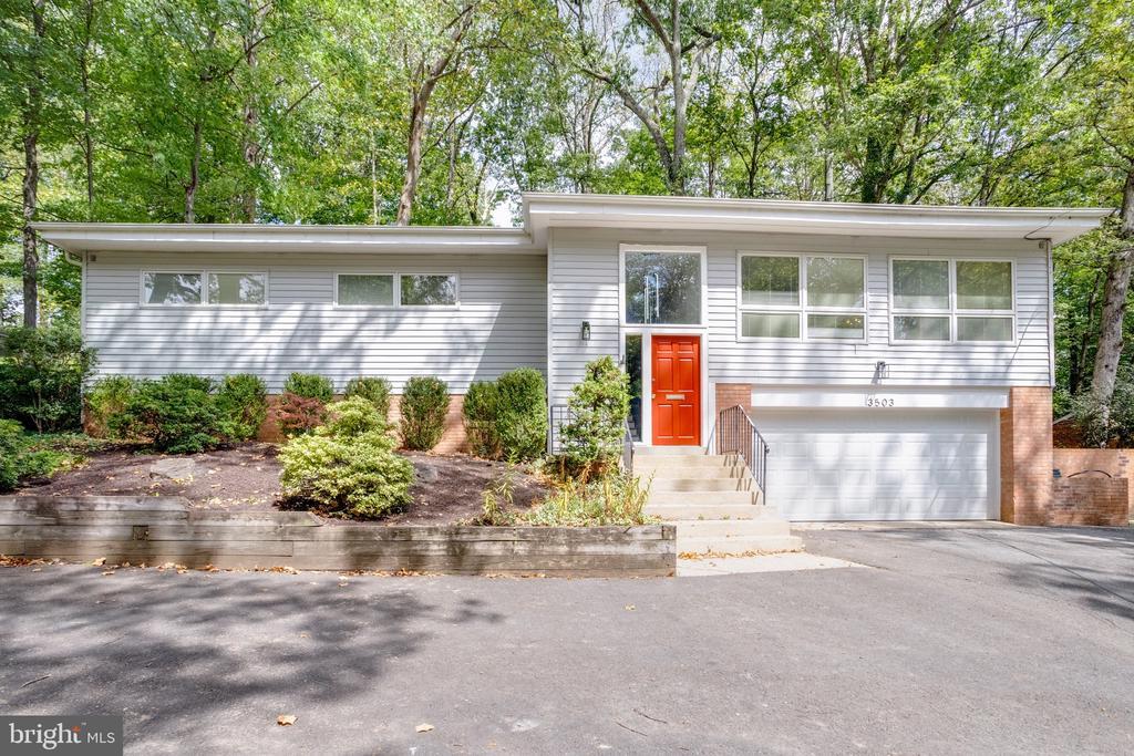 This stunning contemporary 5-bedroom, 3-bath home is perfectly positioned on a generously sized lot, offering the ideal blend of style, space, and functionality. Designed for both relaxation and entertaining, the open layout features soaring ceilings and expansive, gorgeous windows that flood the interiors with natural light and views of the treed backyard. The kitchen is a chef’s delight, complete with sleek stainless steel countertops, warming racks above the gas cooktop, and a high-end stainless steel exhaust hood. the cabinets have roll out shelves for added ease. The main level boasts an open-concept flow connecting the living, dining, and kitchen areas to a *spacious entertainer’s deck* — perfect for hosting parties or enjoying quiet evenings. Luxurious touches include a beautifully renovated hall bath with sky light and a spa-like primary suite, both outfitted with *heated tile floors* and *heated towel bars* for year-round comfort. The living room hosts the woodburning stove surrounded by beautiful floor to ceiling brick, The lower level offers a private retreat with an additional bedroom and full bath, plus a *bonus room* off the oversized laundry area — ideal for a home office, gym, or creative space. The expansive recreation room features a custom built-in bar by "Bars by Bud*, adding a stylish touch. Additional highlights include a *2-car garage*, professionally landscaped grounds, and ample storage throughout.