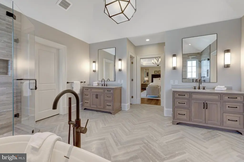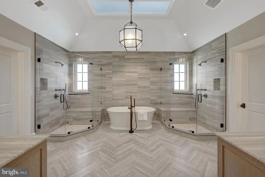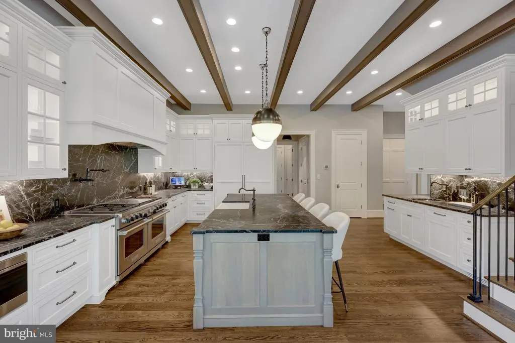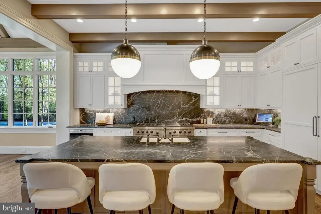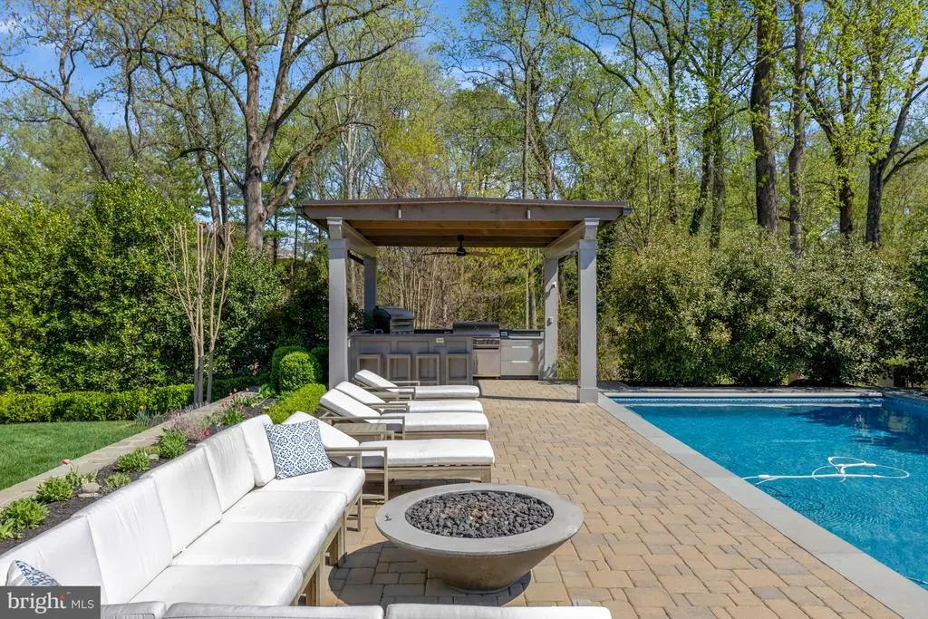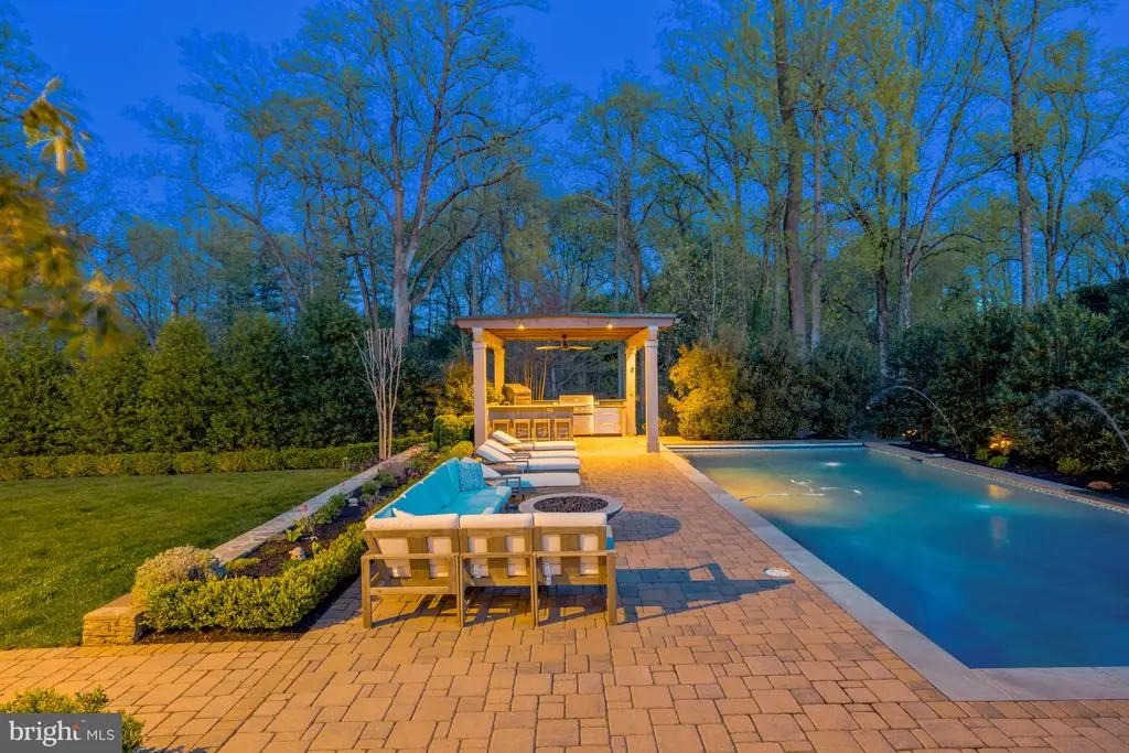 A premier offering in the prestigious enclave of Mackall Farms, this exceptional residence exhibits elevated craftsmanship and uncompromising luxury. A collaboration of McLean-based Winthrop Custom Builders, Andy Staszak Interiors, and Fine Landscapes by Charles Owen, the home seamlessly blends transitional elements with timeless design to create a gracious, yet refined living environment. Exterior elements incorporate natural field stone and painted brick, an EcoStar Empire Shake roof, masonry built chimneys, a saltwater pool, and a 4-Car Garage. An elevator accesses all floors of the home. The Main Level features both white oak hardwood and limestone floors as well as bespoke millwork and detailed trim work. Beyond the impressive 2-story Foyer lies the Great Room with gas Fireplace, stone mantel, quartersawn white oak custom built-ins, and two sets of French doors to the rear loggia. The formal Living Room with wet bar, elegant Dining Room, and a private white oak paneled Library with rear exterior access provide ideal work and entertaining spaces. A magnificent Kitchen with custom built inset cabinetry, soapstone countertops, Wolf/Sub-Zero appliances, and Morning Room with cathedral beamed ceiling and 180-degree views overlook the tranquil backyard. Conveniently, a generously sized Mudroom with direct garage access, 1 of 2 Laundry Rooms, a Half Bath, oversized storage spaces, and separate entrance completes the everyday living spaces. The Upper Level continues with white oak floors throughout. The expansive Primary Owner's retreat features a gas Fireplace, French doors to a private terrace, two custom designed Walk-In Closets, and a light-filled luxurious Bathroom finished with natural stone, a free standing soaking tub, two water closets, and two separate glass-enclosed showers. The secondary Bedroom Suite includes a large sitting room, Bathroom with separate water closet, and walk-in closet. The second Laundry Room, a rear staircase, and 2 additional Bedrooms, both ensuite and with walk-in closets, complete the Upper Level. The walk-out Lower Level is equally impressive with a fully outfitted custom wet bar, 1085-bottle wine cellar, Recreation Room with rustic beamed ceiling and gas Fireplace, state-of-the-art Home Theater, Fitness Room, a 5th Bedroom suite with Full Bath, and conditioned storage areas. The thoughtfully designed backyard living experience features a saltwater pool with spa and water feature, outdoor grill Kitchen, gas firepit, covered flagstone loggia with Fireplace, oversized patio, mature landscaping, and natural privacy screening, all perfect for relaxing, entertaining, alfresco dining, or gardening. The home is also outfitted with a Lutron lighting system, alarm system with cameras, commercial grade internet, and an irrigation system. Ideally located just 5 minutes to the GW Parkway or Beltway, 6 minutes to the Chain Bridge, 10 minutes to Tysons, 12 minutes to Arlington, and equidistant from Reagan and Dulles airports. Experience the splendor and ease of a turnkey offering available now.