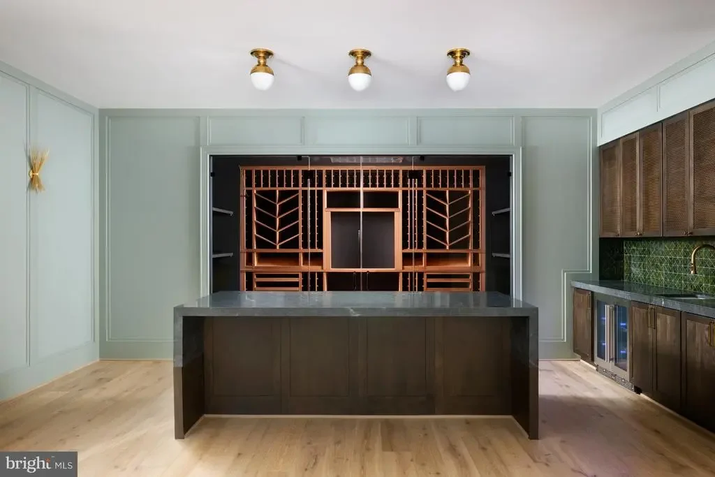 Elevation Homes, in collaboration with DC-based Ariella Designs, introduces an exceptional custom residence that redefines modern luxury in Chesterbrook Woods, one of McLean’s most coveted neighborhoods. Sited on an elevated 0.42-acre lot, this 6 Bedroom, 7 Full Bath, and 3 Half Bath home spans over 9,000 square feet, offering interiors that balance timeless sophistication with contemporary comfort. Across three expansive levels, this home showcases transitional architecture with organic elements, including wide plank white oak flooring, Visual Comfort lighting, marble and quartzite surfaces, and black-framed windows for a clean, elevated look. The main level has 10' ceilings and includes a sun-filled great room with a dramatic fireplace, a private guest suite, and a designer kitchen with an oversized waterfall island and Wolf/Sub-Zero appliance suite. Sliding glass doors open to a screened porch featuring a second fireplace, vaulted ceiling, and heaters—perfect for indoor-outdoor living. Upstairs, the primary suite features a fireplace, a built-in coffee bar, sitting room, two walk-in closets with custom closet systems, and a luxurious ensuite bath with honed marble finishes, dual vanities, a soaking tub, and frameless glass shower. Three additional bedrooms, each with ensuite bathrooms featuring designer vanities and upgraded finishes. A bonus room suite offers a custom-built window seat and additional flexible space. With 10' ceilings, the lower level is designed for entertaining and wellness, offering a spacious rec room with a wood-accented ceiling and fireplace, custom game area, a full wet bar with large island, brass mesh front cabinetry, and a 650-bottle temperature-controlled wine room, as well as a fitness room with full length mirror wall. A separate guest room and full bath complete the level. Additional features include elevator-ready infrastructure, four fireplaces, a three-car garage, integrated dog wash station in the mudroom, back staircase to upper level suite, and custom millwork throughout. Located minutes from parks, trails, Chesterbrook Shopping Center, downtown McLean, and major commuter routes, this home delivers extraordinary comfort, thoughtful detailing, and modern livability in one of McLean’s most desirable communities.