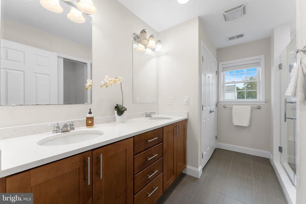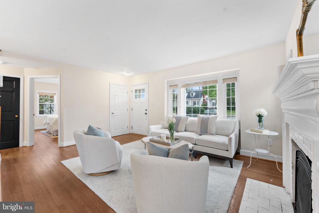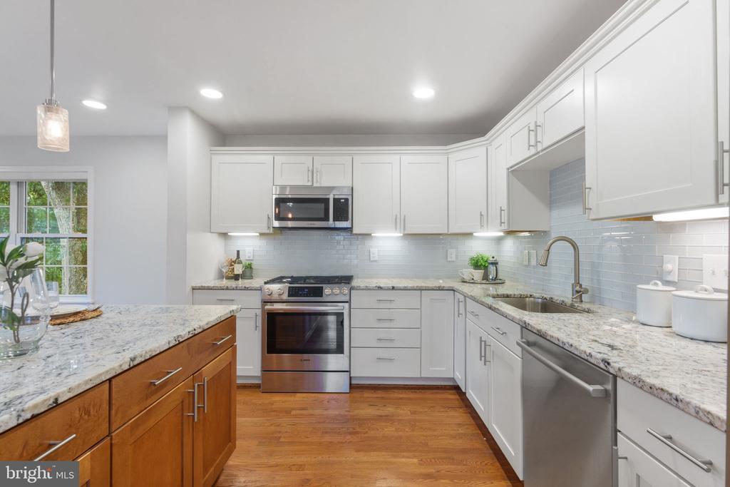 Welcome to 2915 Meadow Lane — a sunny, expanded Cape Cod in sought-after Hillwood, offering over 3,000 sq. ft. of beautifully finished living space and stunning curb appeal. Thoughtfully renovated, this home preserves its classic charm while adding modern function and flexibility. Step inside to an open-concept great room anchored by a wood-burning fireplace with a graceful mantle. The main level is drenched in natural light from picture windows and showcases recessed lighting, light oak hardwood floors, and a fresh neutral color palette. The gourmet kitchen features stainless steel Bosch appliances, white shaker cabinetry with designer backsplash, a gas range, granite countertops, and a spacious island for storage and casual dining. The main level offers two bedrooms—one with an attached bath—while the upper level hosts a spacious primary suite with an ensuite bath featuring a dual vanity and ample storage. Two additional bedrooms upstairs share a full bath, each with generous closet space. The finished lower level boasts a large walk-out recreation room, a half bath, abundant storage, and direct access to the attached two-car garage. Outdoor living shines here with a new stone patio, a deck, and a large backyard perfect for entertaining or relaxing. Located less than two miles from East Falls Church Metro, this home offers easy access to I-66, Route 50, and the vibrant Falls Church City scene. Enjoy nearby shopping at Mosaic District, Eden Center, and Tysons Corner, plus local dining favorites, farmers markets, parks, and community events year-round. Hillwood’s tree-lined streets and welcoming neighborhood spirit make it one of Falls Church’s most beloved enclaves.
