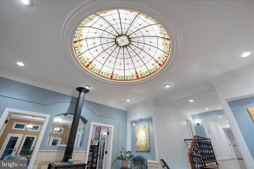 CeilngFan(s), Soaking Tub, Stall Shower, Built-Ins, Crown Molding, Formal/Separate Dining Room, Stain/Lead Glass, Wd Stove Insrt, Upgraded Countertops, Walk-in Closet(s), Shades/Blinds, Wood Floors