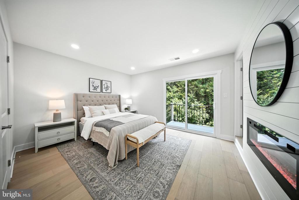 Bold, refined, and beautifully reimagined - this Renovated Mid-Century Modern residence is tucked at the end of a peaceful cul-de-sac, offering the perfect balance of architectural charm and elevated, everyday living. With four bedrooms, four and a half bathrooms, and no HOA, this home is a rare find. The striking black-and-white faade and angled rooflines immediately set the tone for what awaits inside. Step through a vibrant yellow door into a sun-drenched, open-concept layout where wide-plank hardwood floors, and clean modern lines create a cohesive and inviting atmosphere. The chef’s kitchen is an entertainer’s dream, anchored by a sculptural waterfall island and finished with sleek white cabinetry, brass hardware, and a wall of windows that bring the outdoors in. Just beyond, a bold black brick fireplace grounds the living space, offering both warmth and modern edge. On the main level, you’ll find a private bedroom and full bath, perfect for guests or multigenerational living along with a stylish powder room and a standout laundry room featuring graphic tilework, floating wood shelves, and a built-in dog washing station that’s as functional as it is chic. Upstairs, the primary suite is a true sanctuary. Shiplap accents, a cozy electric fireplace, and a private juliet balcony creates a calming retreat, while the expansive walk-in closet feels like a boutique showroom. The ensuite bathroom is thoughtfully designed with dual sinks, a dedicated vanity, and a glass-enclosed rain shower that elevates the everyday routine. Two additional upstairs bedrooms each enjoy their own full bathrooms, providing privacy and comfort for all. Out back, the spacious yard and deck invite relaxed outdoor living, with a storage shed tucked away for added convenience. From its curated interior finishes to its quiet cul-de-sac setting, this home delivers design-forward living without compromise - modern, inviting, and move-in ready.