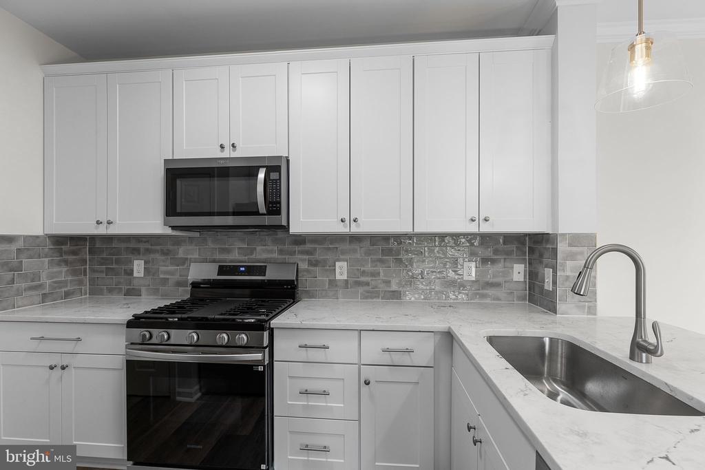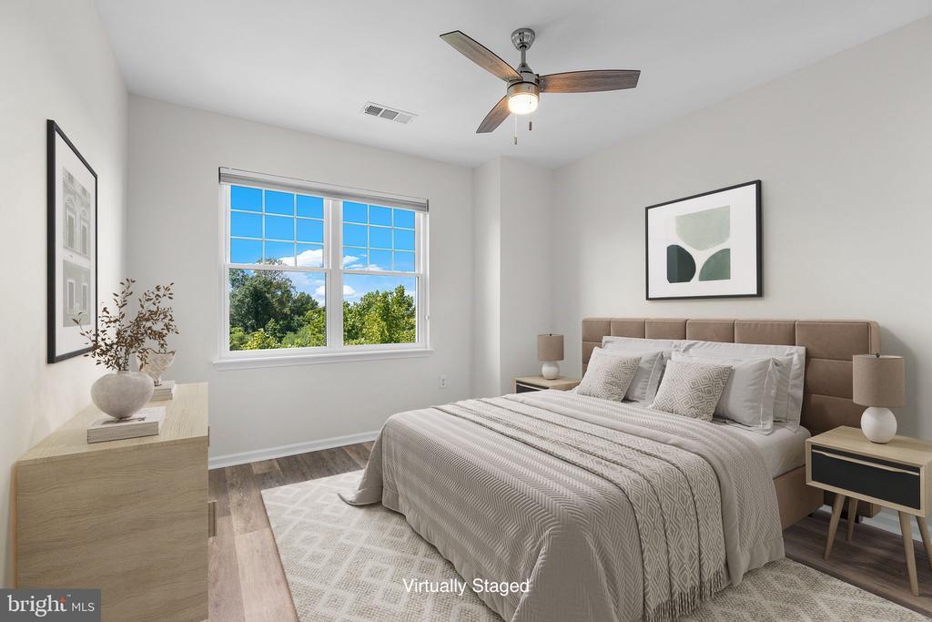 FRESHLY RENOVATED!!! Beautiful 2-bedroom, 1-bath top-floor corner unit with an oversized private one-car garage with ample storage and an additional parking space in a gated community near the Fairfax Government Center. The light-filled living room boasts a vaulted ceiling, gas fireplace, ceiling fan, and a new sliding glass door opening to a balcony overlooking the neighborhood pond. Recent renovations include new LVP flooring with Quietwalk underlayment, fresh paint throughout, updated lighting, a modern kitchen with new cabinets, stainless steel appliances, stunning quartz countertops, and tile backsplash. The refreshed bathroom features dual sinks, a soaking tub/shower, and convenient laundry access. Large bedroom windows have been replaced with energy-efficient, noise-reducing models for added comfort. The HVAC and hot water heater were replaced in 2018. Condo community has a pool and community center with an exercise room and party room. Less than a mile to the Fairfax Government Center, Fairfax County Police Department, and shops and Restaurants at Fairfax Corner; 1.5 miles to Fair Oaks Mall. Easy access to I-66.