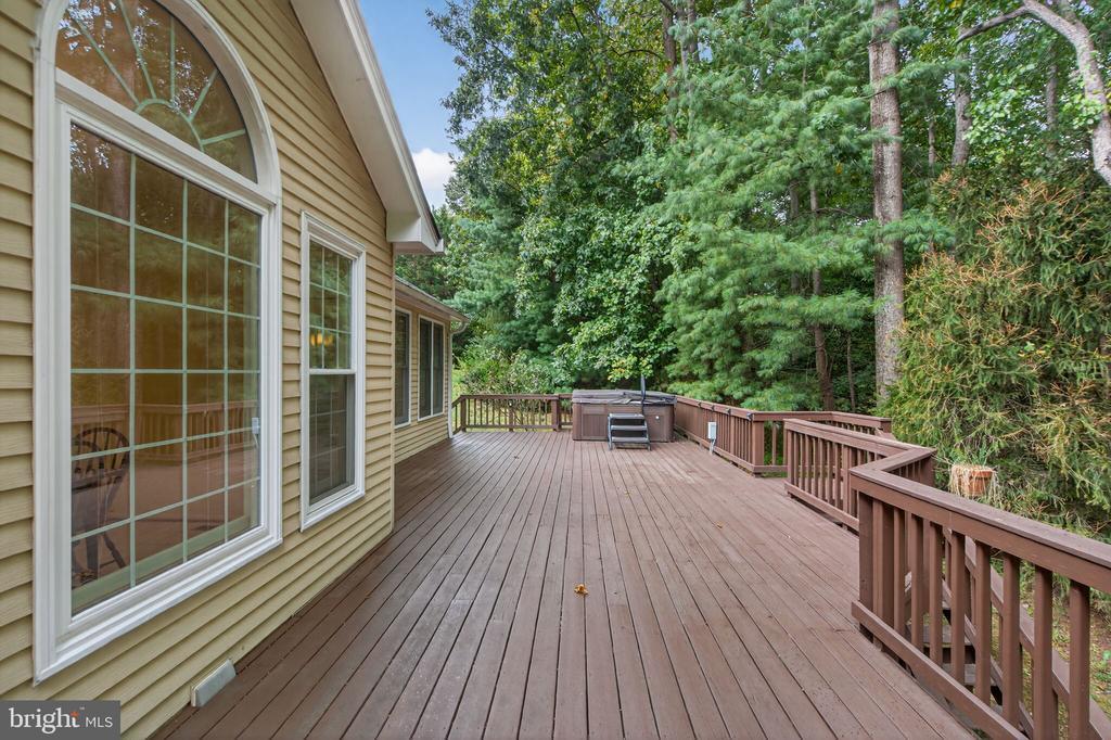 *** Main Level Living at its Very Best*** Welcome to 6408 Jumet Court, a stately brick colonial tucked away on a private, elevated one-acre lot in the prestigious Hunt at Fairfax Station community. Set against a wooded backdrop, this elegant residence combines timeless architectural charm with beautifully renovated interiors and generous living spaces designed for both relaxation and entertaining. The main level features a grand open-concept design with soaring ceilings in the two-story foyer and family room, complemented by walls of windows in the breakfast room and family room that fill the home with natural light and offer serene views of the woods. A large gourmet kitchen, complete with granite countertops, wall oven/convection oven, and a spacious center island, opens seamlessly to the breakfast room and the expansive party deck—perfect for indoor-outdoor entertaining. The formal dining room, enhanced with a bay window bump out, is ideal for hosting large gatherings, while the gas fireplace in the family room adds warmth and charm. A dedicated office with built-in shelving and a convenient main-level laundry/mudroom provide both functionality and flexibility. The highlight of the main floor is the lovely primary suite, boasting abundant windows, a spacious walk-in closet, and a luxuriously renovated en suite bath with dual vanities, a soaking tub, separate shower, and heated floors. Upstairs, you’ll find three generously sized bedrooms, two with walk-in closets, and a well-appointed hall bath with double sinks and vanity. The massive, light-filled walk-out basement offers incredible versatility with custom built-in cabinetry, a full bath, and ample space to create a guest suite, recreation area, or home gym. Additional features include hardwood floors in the foyer, living room, and dining room, an oversized side-load garage with plenty of storage, and mature landscaping that ensures year-round privacy. This exceptional home offers a rare blend of elegance, comfort, and seclusion—all just minutes from major commuter routes, shopping, dining, and Fairfax County’s top-rated schools. Whether hosting a celebration on the deck, working from your private office, or retreating to the spa-like primary suite, 6408 Jumet Court is designed to support a lifestyle of refinement and tranquility. Roof 2023, Hot Water Heater 2025, Upstairs HVAC 2024 Hot Tub conveyed "as-is", without guarantee.