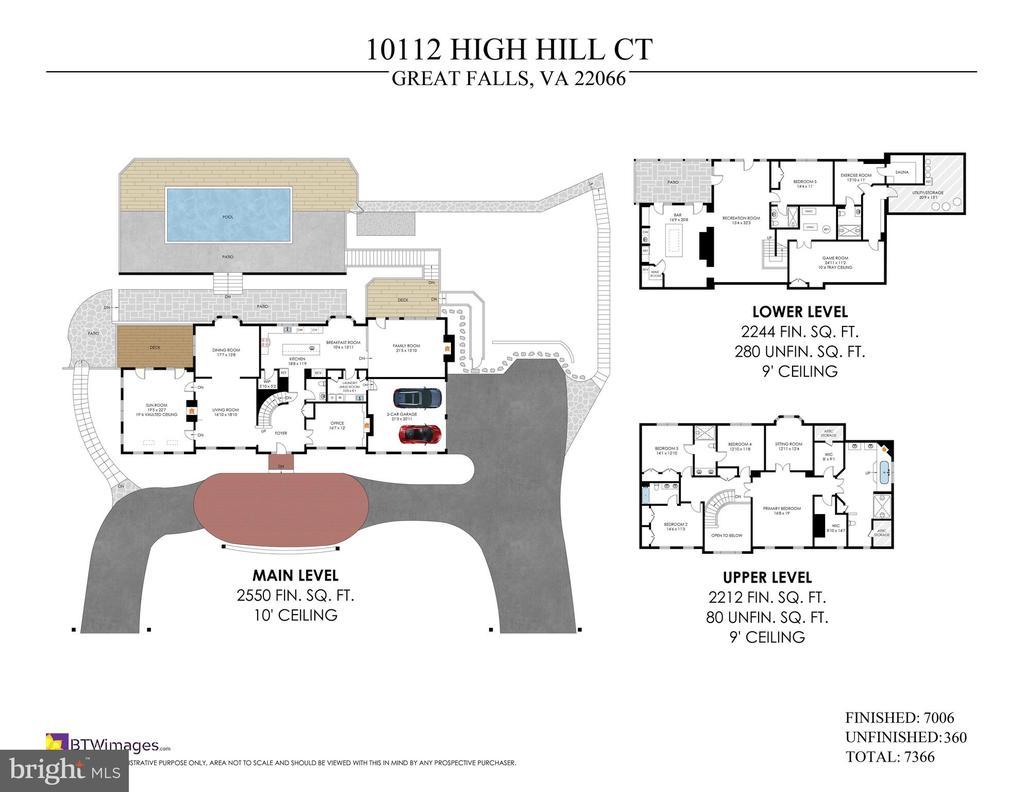 Discover refined living in this exceptional 5-bedroom, 5.5-bath residence tucked within the desirable Falcon Ridge on the Potomac community—one of the few neighborhoods with direct access to the 900-mile Potomac Heritage Trail along the river. Residents enjoy over 6 miles of walking and running trails within the neighborhood, a serene wooded setting, and just a 5-minute drive to the acclaimed Chez Franois French restaurant. School bus service to Langley High, Cooper Middle, and Great Falls Elementary stops conveniently at the High Hill Court intersection. Step inside to a sun-filled two-story foyer and find hardwood floors, high ceilings with recessed lighting, and elegant flow throughout. The main level offers a private home office, sunroom with deck access, and an open-concept kitchen featuring a center island with seating, pantry, and clear sightlines to the Family Room, patio, and pool. A laundry room, powder room and two-car garage complete this level. The upper level hosts 4 bedrooms and 3 full baths, including the expansive Primary Suite with a sitting room, two walk-in closets (one with attic access), and a spa-like bath with soaking tub, walk-in shower, dual sinks, and generous storage capabilities. The walk-out lower level is designed for entertaining and wellness, with a spacious recreation room, bar and wine room, game room, exercise room, sauna, and 2 full bathrooms, plus a private 5th bedroom. Outdoor living shines with an in-ground heated pool, multiple decks, patios, and a whole-house generator for peace of mind. This is a rare opportunity to enjoy resort-style living in a premier Great Falls location. DO NOT walk lot without an appointment please.
